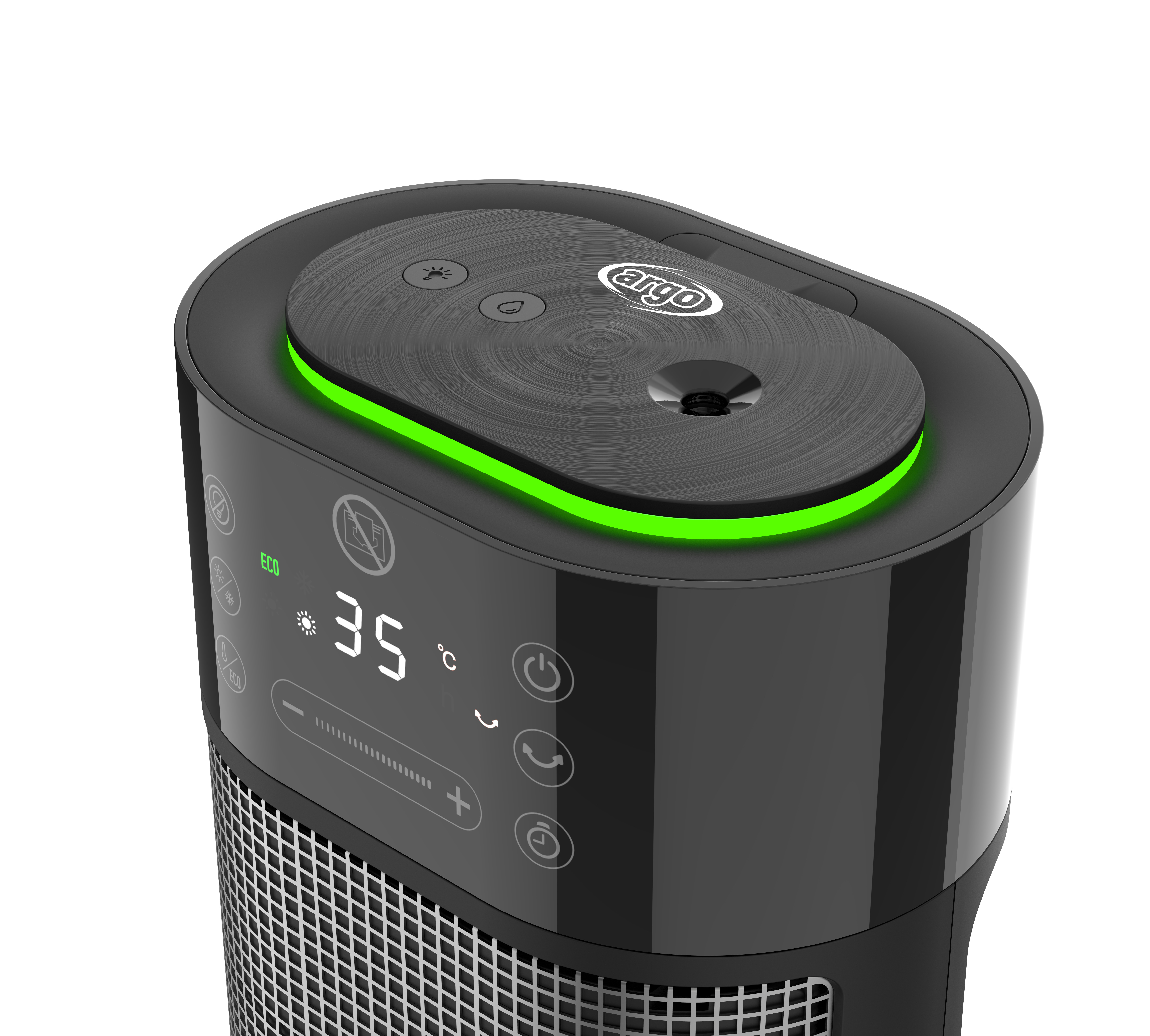Elegant en met een technologische uitstraling, geheel in zwart, is de ARGO TECH TOWER HUMY veel meer dan een PTC-torenventilatorkachel: naast een effectieve verwarming zorgt hij dankzij de ultrasone luchtbevochtigingsfunctie ook voor het juiste comfort.