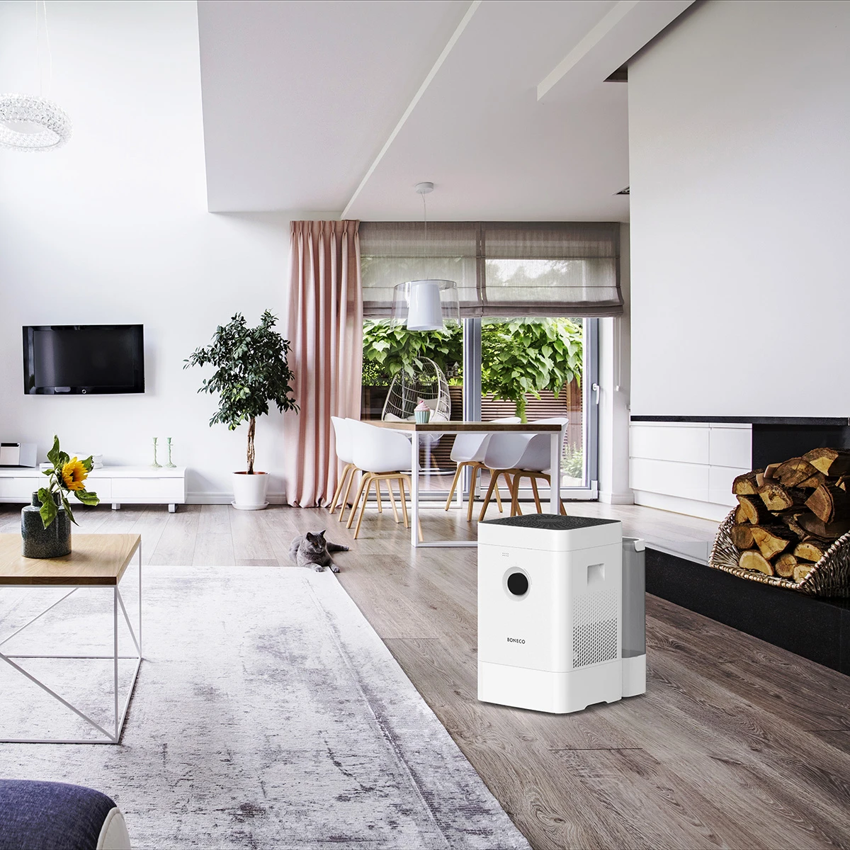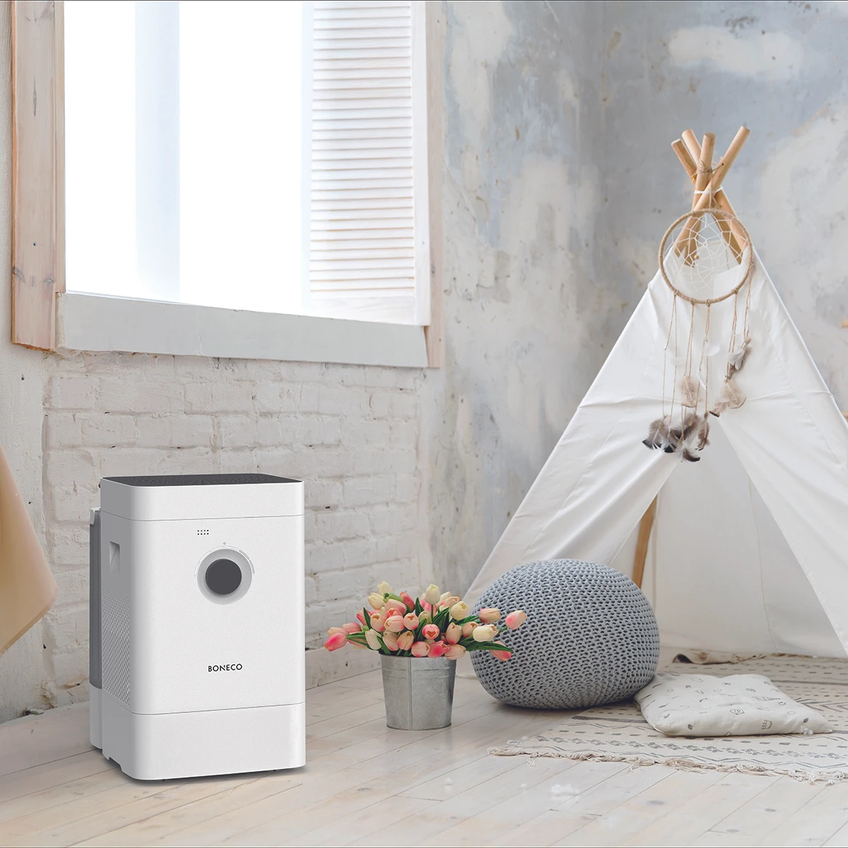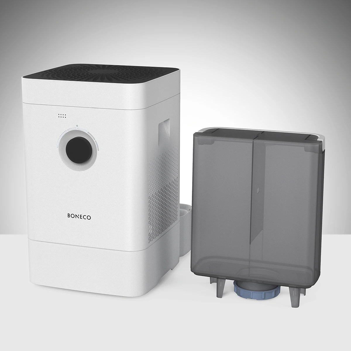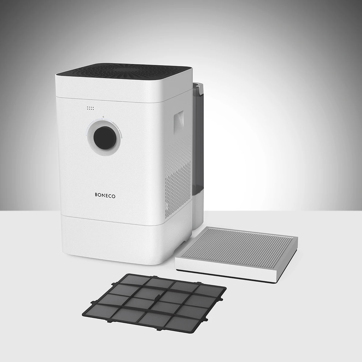 De Boneco Hybride Bluetooth luchtbevochtiger en luchtreiniger bezit een roterende verdampingsmat vervaardigd van kunststof met uitstekende eigenschappen voor vochtafgifte. De Boneco H400 verzorgt absolute ‘zacht water’ verdamping, hij voorkomt neerslag van kalkdeeltjes. Geschikt voor een ruimte tot 150 m³. Tijdens het bevochtigen worden zwevende stofdeeltjes uit de lucht ‘gewassen’. De lucht wordt extra intensief gereinigd door zijn HEPA (fijnstof) filter, het filter wordt meegeleverd.