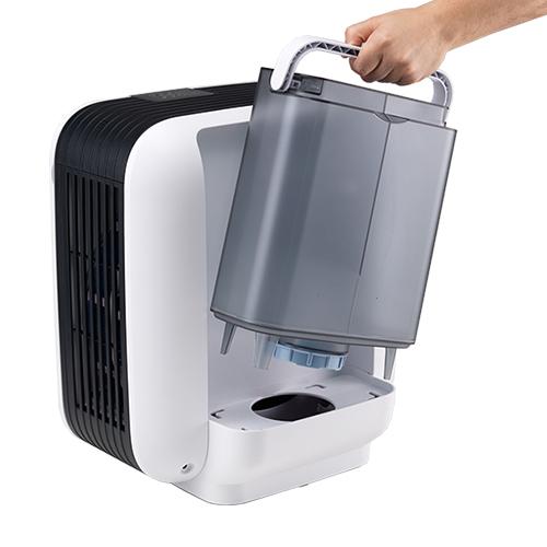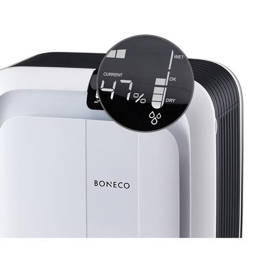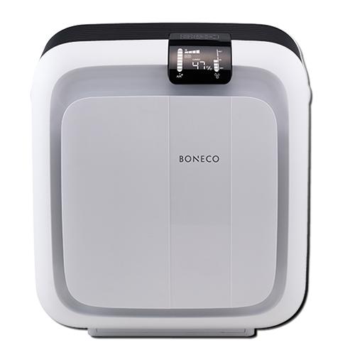 Boneco H680 Hybride luchtreiniger en luchtbevochtiger (2-in-1) met hybride downstream-filter. Dit downstream-filter bestaat uit een koolstoffilter en een HEPA-filter. Aanbevolen voor mensen met een allergie. Eenvoudige, digitale bediening en vlot schoon te maken.