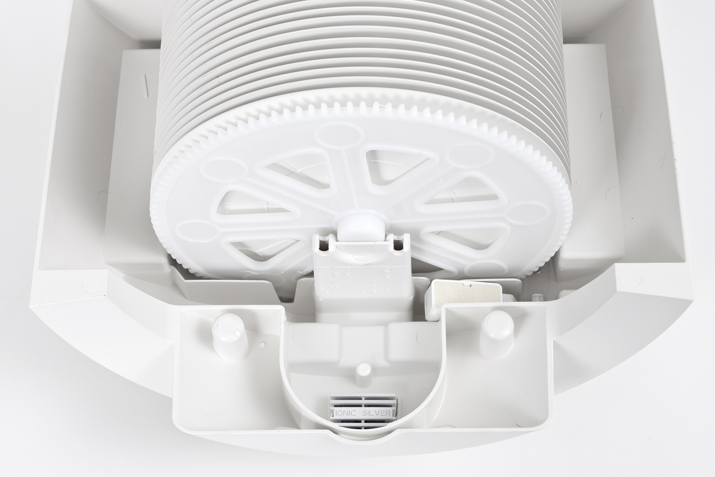 De Stylies Aquarius design luchtbevochtiger én luchtwasser maakt weinig geluid en is geschikt voor het bevochtigen van grotere kamers tot 50 m2, bijvoorbeeld een woonkamer of een grote slaapkamer. De lucht wordt op een natuurlijke wijze - koud water verdamping - van voldoende vocht voorzien. Tevens worden kleine deeltjes die in de lucht zweven verwijderd. Verontreinigingen zoals stof en pollen slaan neer op de bevochtigingsschijven van de luchtbevochtiger. De snelheid van verdamping is te regelen met behulp van 2 standen, de hoge of lage ventilatiestand. Deze nieuwe bevochtiger - luchtwasser heeft een mooi design en is voorzien van een instelbare hygrostaat en schakelt automatisch uit bij een leeg reservoir. De Aquarius design luchtbevochtiger toont de actuele relatieve vochtigheid en heeft een indicator voor reiniging. Voor goede, hygiënische luchtbevochtiging wordt de 'Ionic Silver Cube' gebruikt. De Ionic Silver Cube bevat zilverionen die gelijkmatig aan het water worden afgegeven zodat micro-organismen niet kunnen groeien. De Stylies Aquarius design bevochtiger gebruikt geen filtermatten voor bevochtiging. Het water verdampt rechtstreeks vanaf de bevochtigingsschijven die langzaam door het reservoir draaien.