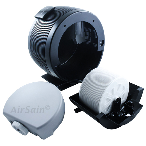De Stylies Aquarius design luchtbevochtiger én luchtwasser maakt weinig geluid en is geschikt voor het bevochtigen van grotere kamers tot 50 m2, bijvoorbeeld een woonkamer of een grote slaapkamer. De lucht wordt op een natuurlijke wijze - koud water verdamping - van voldoende vocht voorzien. Tevens worden kleine deeltjes die in de lucht zweven verwijderd. Verontreinigingen zoals stof en pollen slaan neer op de bevochtigingsschijven van de luchtbevochtiger. De snelheid van verdamping is te regelen met behulp van 2 standen, de hoge of lage ventilatiestand. Deze nieuwe bevochtiger - luchtwasser heeft een mooi design en is voorzien van een instelbare hygrostaat en schakelt automatisch uit bij een leeg reservoir. De Aquarius design luchtbevochtiger toont de actuele relatieve vochtigheid en heeft een indicator voor reiniging. Voor goede, hygiënische luchtbevochtiging wordt de 'Ionic Silver Cube' gebruikt. De Ionic Silver Cube bevat zilverionen die gelijkmatig aan het water worden afgegeven zodat micro-organismen niet kunnen groeien. De Stylies Aquarius design bevochtiger gebruikt geen filtermatten voor bevochtiging. Het water verdampt rechtstreeks vanaf de bevochtigingsschijven die langzaam door het reservoir draaien.