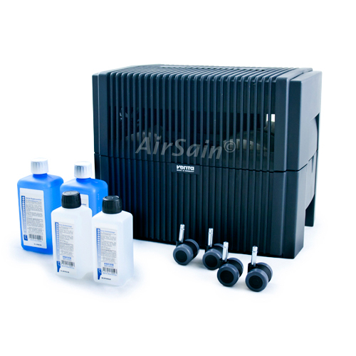 Accessoires voor Venta LW44 Plus en Venta LW45 zijn los te bestellen. De Venta LW44 Plus bevochtigt en reinigt de lucht zonder het gebruik van filterkussens. Deze luchtwasser is erg gemakkelijk te onderhouden en heeft slechts een verbruik van 8 watt. Luchtbevochtiger én luchtreiniger voor een aangenaam binnenklimaat. Totaalpakket: De Venta LW44 Plus is ook verkrijgbaar als "totaalpakket" voor 2 seizoenen bevochtiging zonder onderhoudskosten. Het totaalpakket bestaat uit: 1x Venta LW44 Plus (wit of zwart), 2x 500ml hygiënemiddel, 2x 250ml reiniger, 1x set wieltjes (4 stuks).