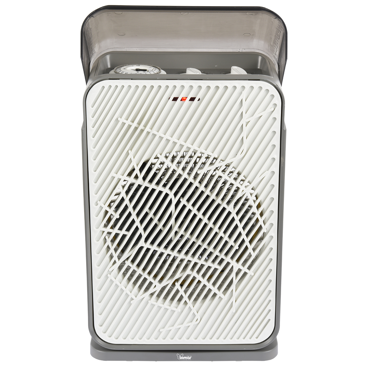 Ventilatorkachel Bimar HF209 voor gebruik in woonkamers, slaapkamers, keukens, badkamers, garages en andere ruimtes. Drupwaterdicht uitgevoerd met beschermingsgraad IP21 tegen vocht en stof. Geschikt voor ruimtes van 20 m².