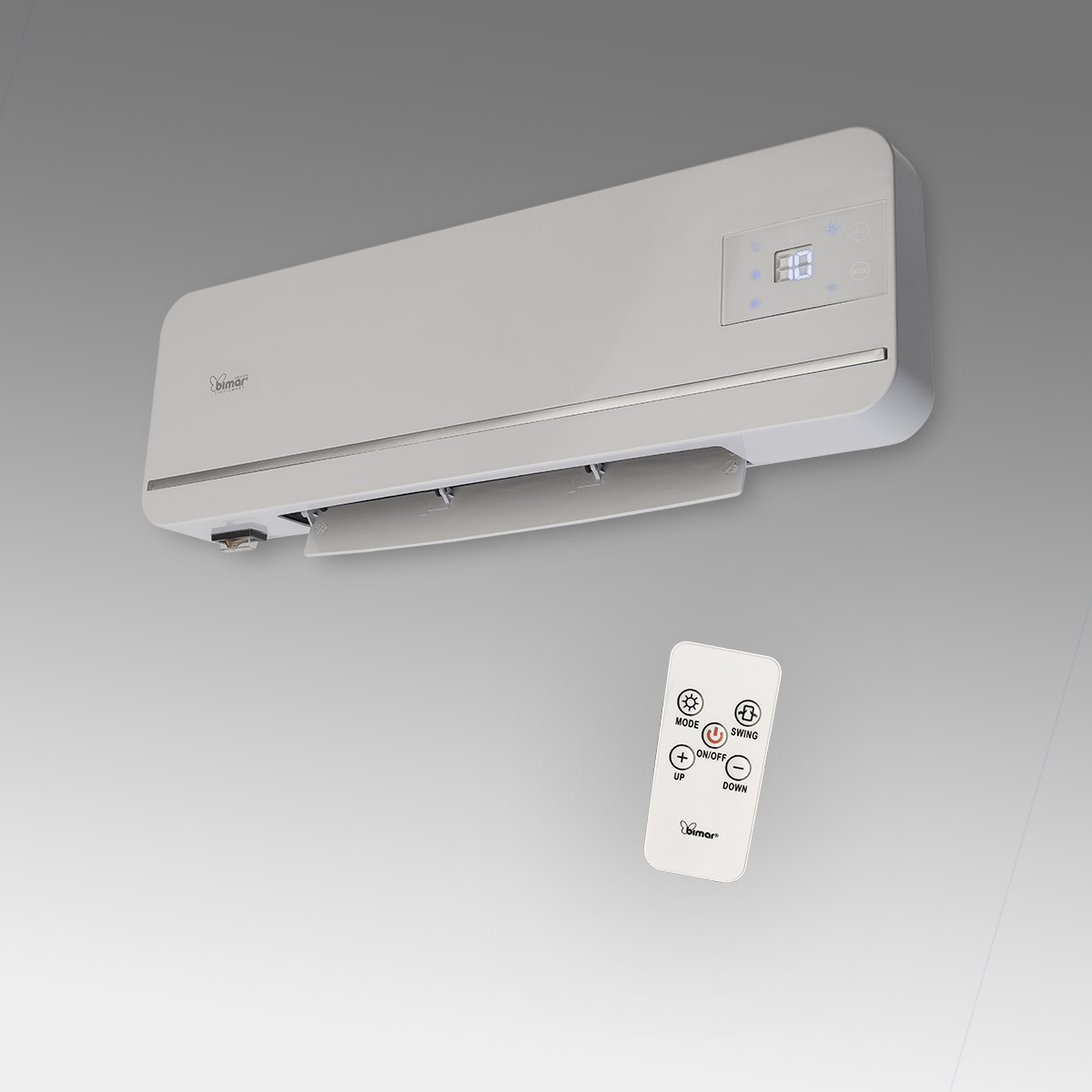 Wandmodel ventilatorkachel Bimar HP131 bezit WiFi voor smartphone of tablet bediening. Daarnaast bedien je hem eenvoudig met de afstandsbediening.