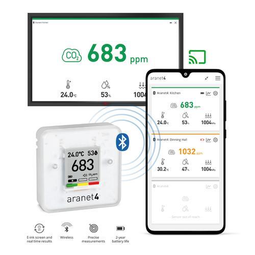 CO2 Melder en CO2 Logger Aranet 4 Pro meet in ruimten waar mensen verblijven en onvoldoende wordt geventileerd. De luchtkwaliteit wordt slechter doordat hinderlijke geuren en schadelijke stoffen zoals fijnstof, bacteriën en virussen zich ophopen én onvoldoende frisse lucht binnenkomt. Onvoldoende ventilatie leidt tot gezondheidsklachten. CO2 Melder en CO2 Logger Aranet 4 Pro geeft een goede indicatie voor luchtverversing én luchtkwaliteit. De Aranet 4 Pro is ook via internet uit te lezen en te koppelen aan AirTeq Smart monitoring.