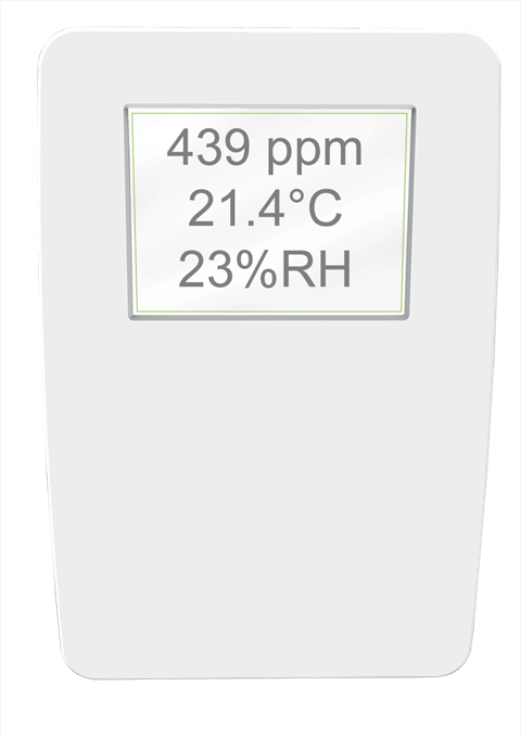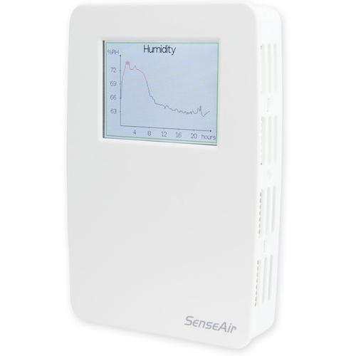 SenseAir CO2RLVT met touchscreen voor het meten van de luchtkwaliteit binnenshuis. Deze IAQ-meter (Indoor Air Quality) meet CO2, omgevingstemperatuur en relatieve luchtvochtigheid. Snel en overzichtelijk kan een grafische weergave van de gemeten waarden over de afgelopen dag of week op het display worden getoond.