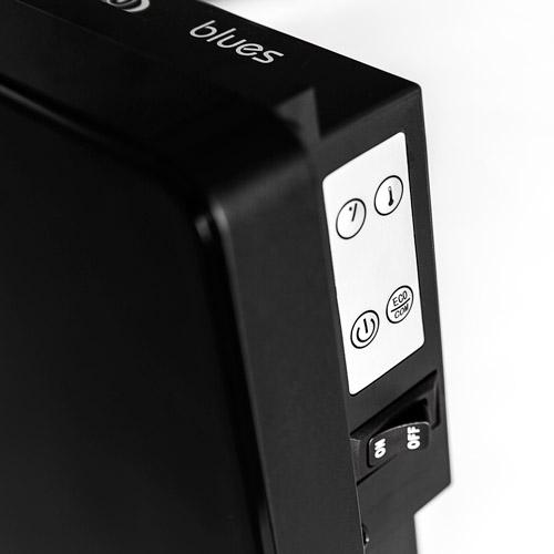 Elektrische convector verwarming Argoclima Blues heeft een elegant design met een glanzende, zwarte glasplaat en een LED display. Instelbaar van 5-35°C via de meegeleverde afstandsbediening. Met IP24 klasse beveiliging, dus ook geschikt voor een badkamer. De elektrische convectorkachel verwarmt ruimtes tot 22 m² (57 m³). ELEKTRISCHE KACHEL MET IP24 BEVEILIGING EN AFSTANDSBEDIENING WANDMONTAGE IS MOGELIJK Argo, Improve your Life