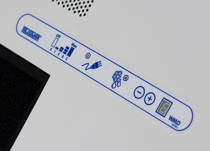 Luchtontvochtiger Cuoghi WMD Small is een kleine wandmodel ontvochtiger. Design en efficiëntie in één, hij is slechts 217 millimeter dik. De kleine WMD luchtontvochtiger is eenvoudig te installeren in een huishoudelijke omgeving en in een professionele omgeving. Ondanks zijn geringe afmetingen zijn de prestaties groots. De luchtdroger verwijdert tot 19.4 liter water per dag. Het speciale ontwerp is ruimtebesparend waardoor de toepassingen uitgebreid zijn. Voorkom een hoge luchtvochtigheid in uw ruimte zonder plaats op de vloer kwijt te zijn met deze compacte wandmodel ontvochtiger van Cuoghi. Cuoghi WMD Small is degelijk uitgevoerd. Hij is volledig van metaal en geverfd met hogetemperatuur poedercoating voor een lange levensduur. De WMD small is uitgerust met een praktische en efficiënte elektronische bediening. Stel de gewenste vochtigheidsgraad in via de eenvoudige soft-touchknoppen