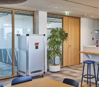 Luchtreiniger voor commerciële en publieke binnenruimtes De Daikin AstroPure 2000 (BR00000676) is een hoogwaardige, mobiele luchtreiniger ontworpen voor commerciële en publieke binnenruimtes tot 200 m2. Deze plug-and-play recirculatie-unit is uitgerust met een krachtig HEPA H14-filter (99,995% efficiëntie). AstroPure is een volledig autonome stand-alone recirculatie-eenheid voor gebieden waar extra, extra hoge filtratieprestaties nodig zijn tegen elk type verontreiniging, inclusief virussen. AstroPure kan ook worden gebruikt als Negative Pressure Unit. Dankzij de geïsoleerde dubbelwandige behuizing werkt de unit fluisterstil (slechts 55,9 dB op hoogste stand) en is daardoor ideaal voor gebruik in kantoren, scholen, winkels en zorginstellingen. De AstroPure 2000 is officieel erkend door de FOD Volksgezondheid als effectief middel tegen het SARS-CoV-2 virus, en biedt maximale bescherming tegen virussen, bacteriën, fijnstof en geurtjes. AstroCel III Het HEPA-filter is voorzien van eFRM-filtratiemedium dat een ultrahoge efficiëntie combineert met een hoge deeltjesbelasting, om 99,99% van al het stof, pollen, schimmels, bacteriën, virussen en alle deeltjes in de lucht met een grootte van 0,3 micron of groter te verwijderen. H14-filtratie-efficiëntie overeenkomstig EN1822 De filterconfiguratie in V-vorm, gecombineerd met microglasmedium, biedt een hoger debiet en de kleinst mogelijke drukval in vergelijking met traditionele HEPA-filters Maakt gebruik van hoogwaardig microglasmedium voor een zeer efficiënte verwijdering van deeltjes Compatibel met Discrete Particle Counter (DPC) en fotometrische testmethoden, zoals de toegang en instrumentatie toelaten LCD-scherm Dankzij de interface met een afsluitbaar lcd-scherm kan de gebruiker meerdere instellingen aanpassen, zoals: Het wijzigen van de luchtstroom (variabel tot 2000 m³/u) Het in realtime monitoren van de filters Een strikte controle op effectieve sluiting van de deur Kenmerken van luchtreiniger Daikin AstroPure 2000 model BR00000676 Voorfilter: RedPleat Carb (ISO grof 65%) met actieve koolstof voor geurverwijdering: : een ISO grof 65% voorfilter met actieve koolstof voor geurverwijdering, die de laagst mogelijke werkingskosten biedt met lagere weerstand, langere levensduur van het filter en bescherming van het geïnstalleerde HEPA-filter. Hoofdfilter: AstroCel III HEPA H14 (volgens EN1822): Het HEPA-filter is uitgerust met eFRM-filtratiemedium, dat een hoog rendement combineert met een deeltjeslading voor het verwijderen van 99,99% van stof, pollen, schimmel, bacteriën, virussen en alle deeltjes in de lucht met een grootte van 0,3 micron of groter. Luchtdebiet: Tot 2.000 m³/uur Interface met een afsluitbaar lcd-scherm Stille werking dankzij dubbelwandige geïsoleerde behuizing (ca. 56 dBA) Veelzijdig: geschikt voor gebruik binnen of buiten de te reinigen ruimte Installeren: installatie van luchtinlaat- en luchtuitlaatkanalen (optioneel) Filter toegang: het ontwerp met schuiflade biedt eenvoudige toegang tot en onderhoud van filters Mobiel ontwerp met wielen – eenvoudig te verplaatsen Gebruiksvriendelijk controlepaneel met filterindicaties en snelheidsregeling De AstroPure luchtreiniger wordt geleverd met een installatie-, bedienings- en onderhoudshandleiding en een AAF HEPA-filtertestrapport.