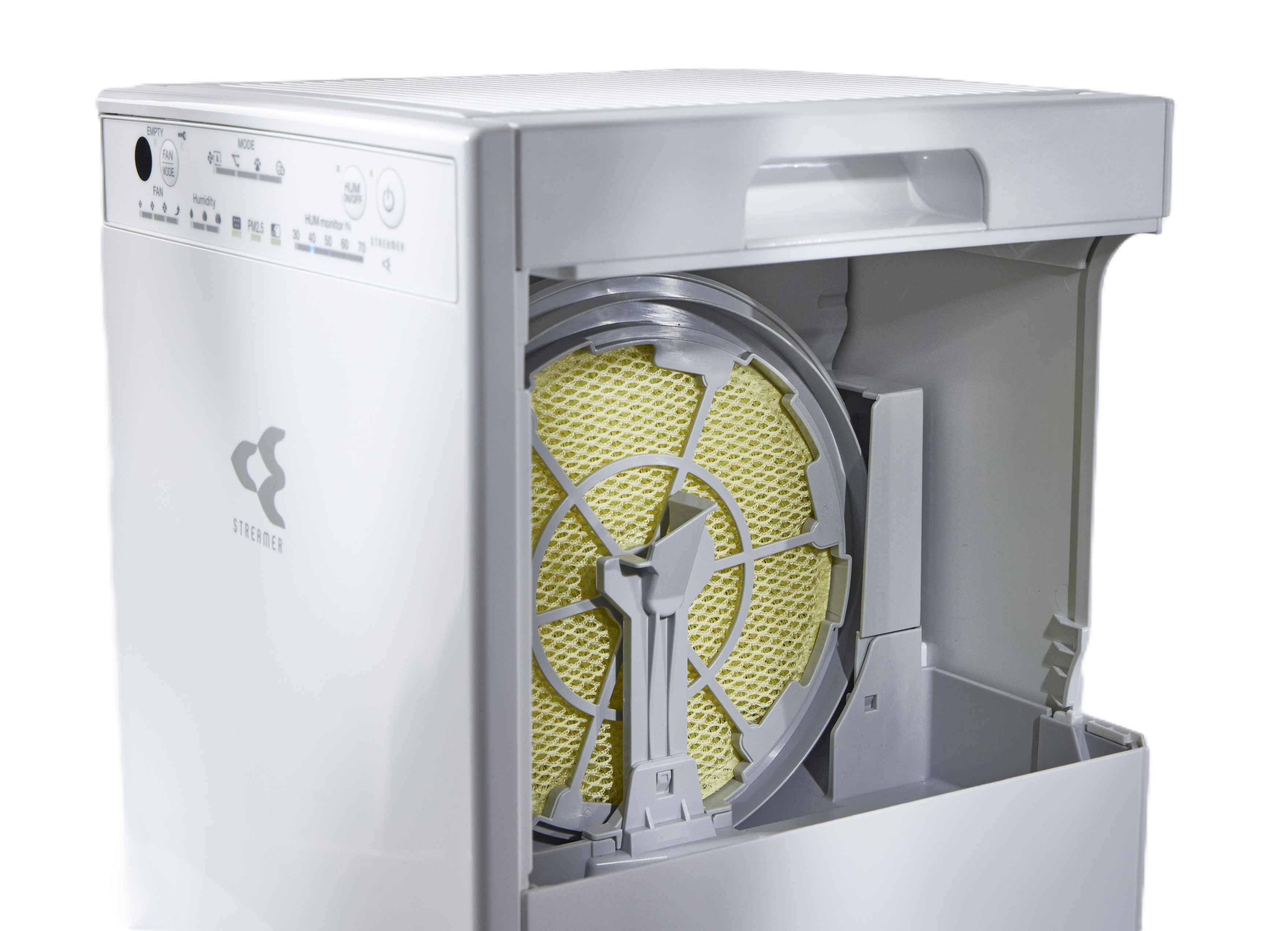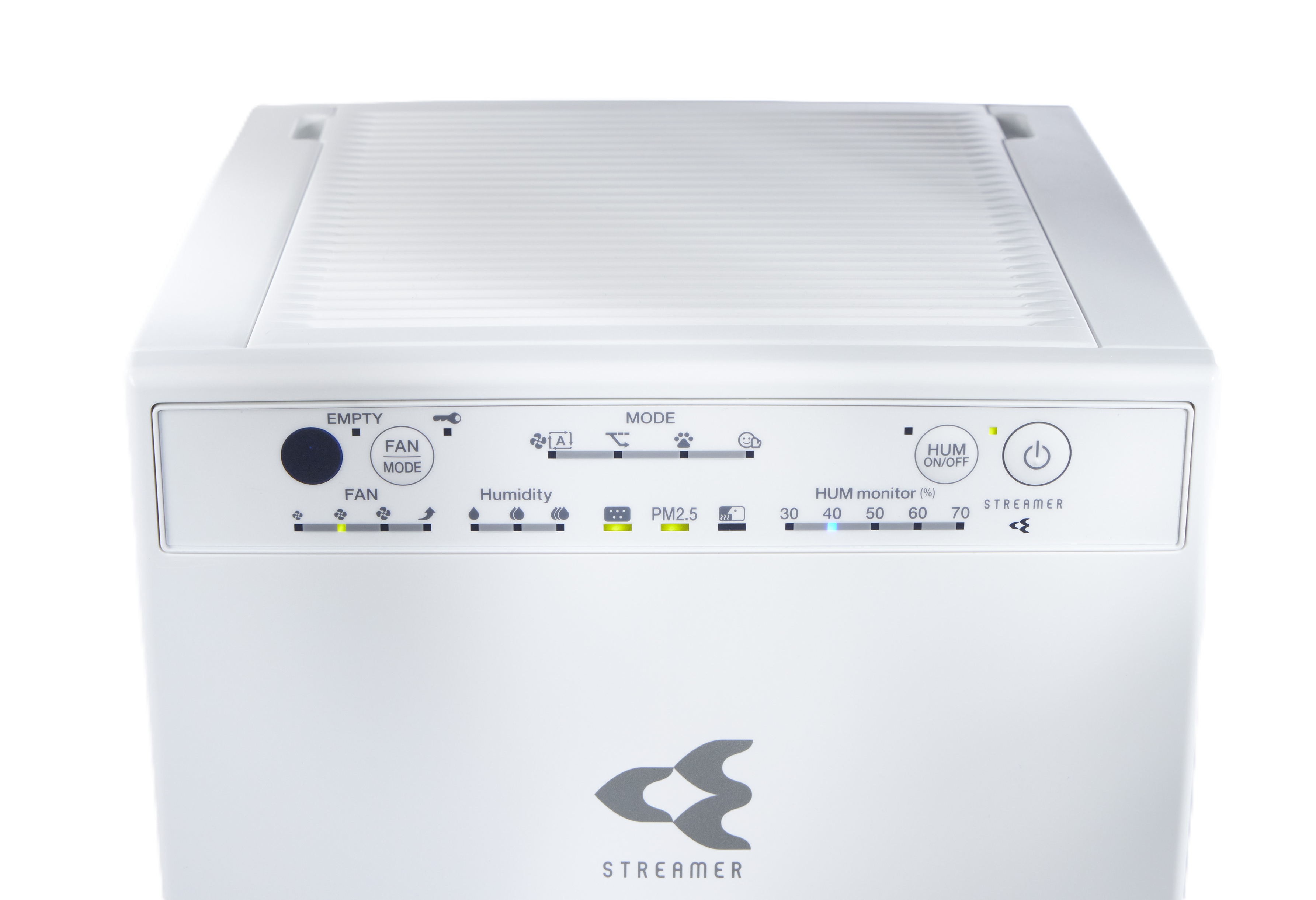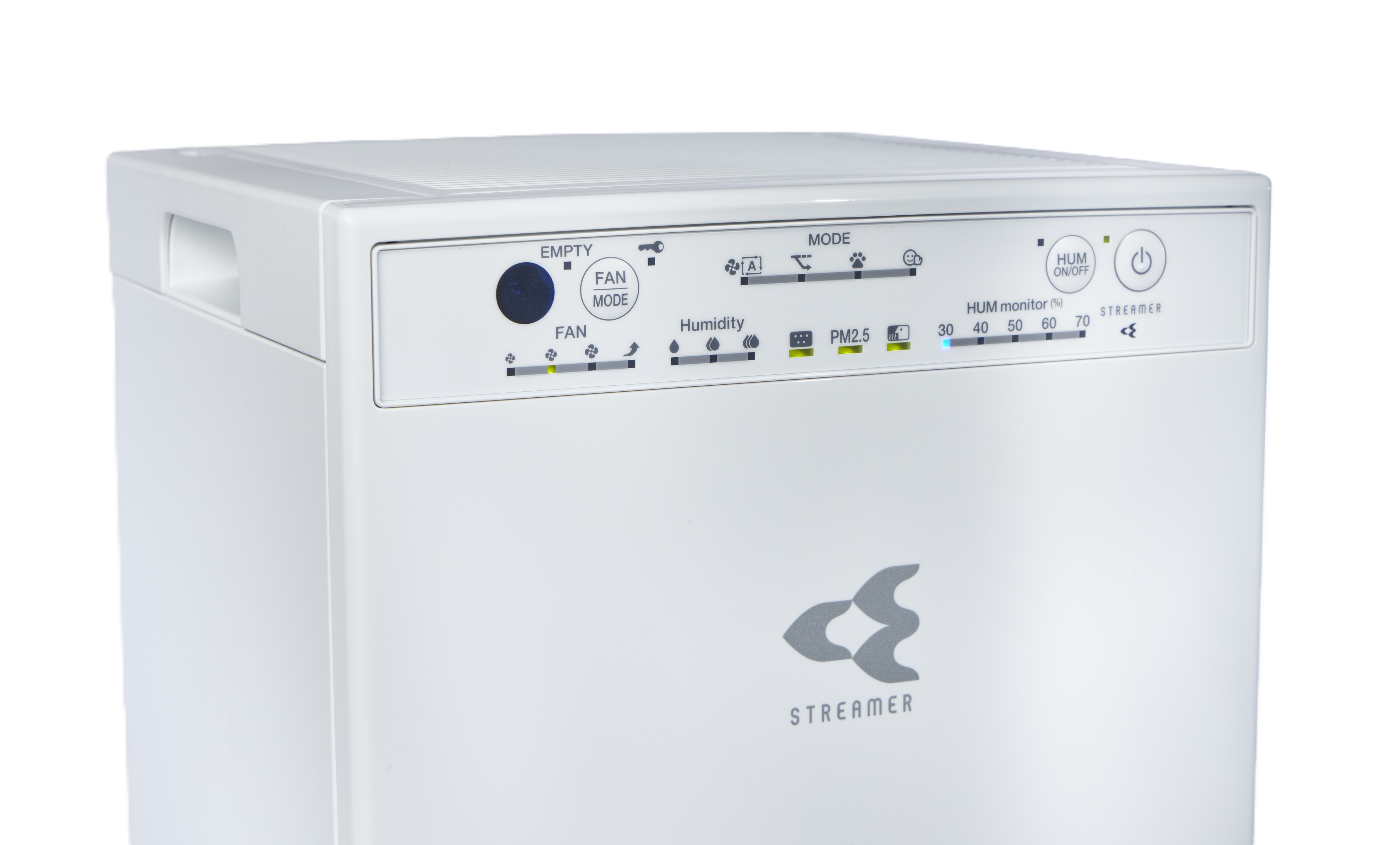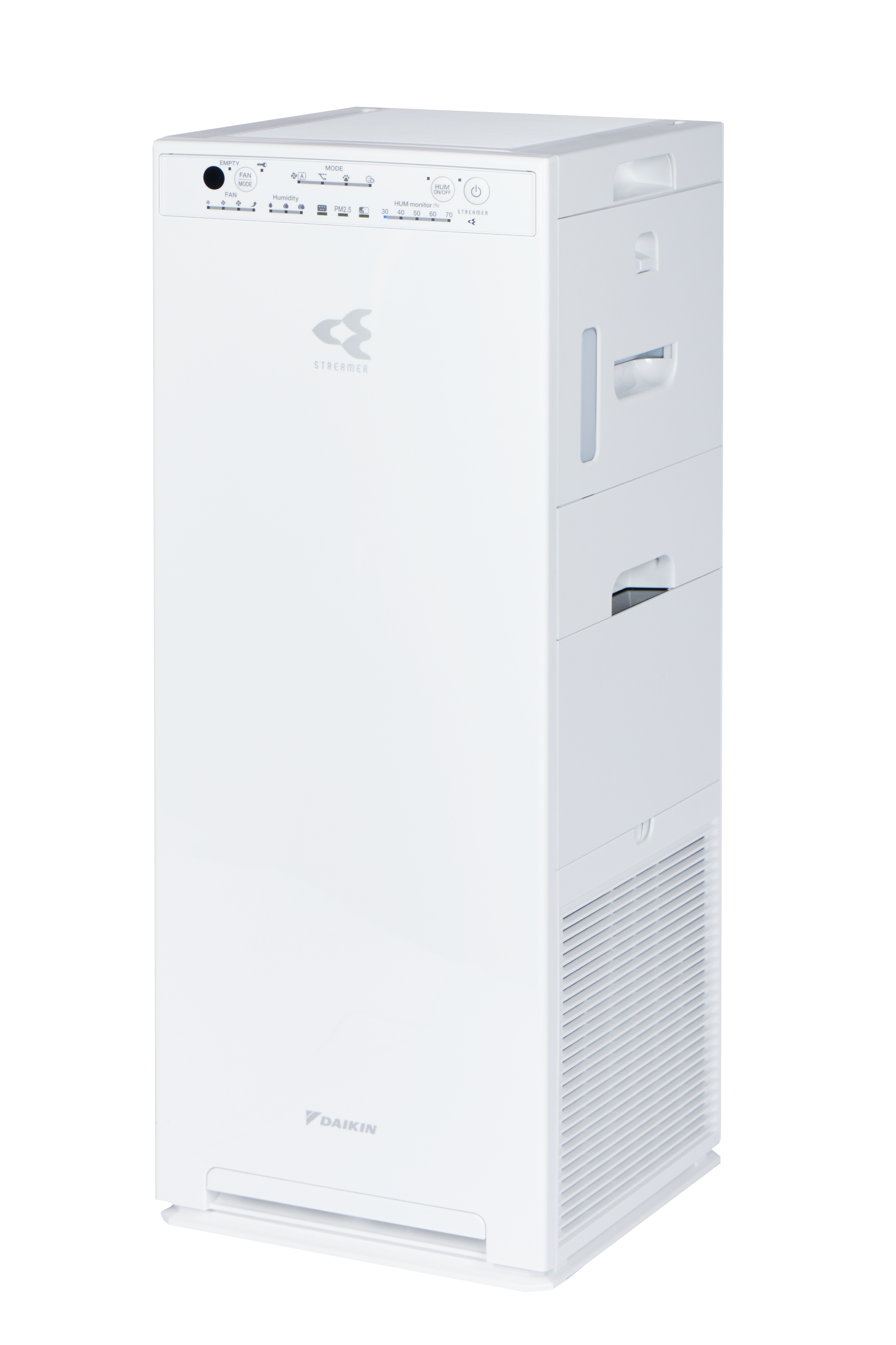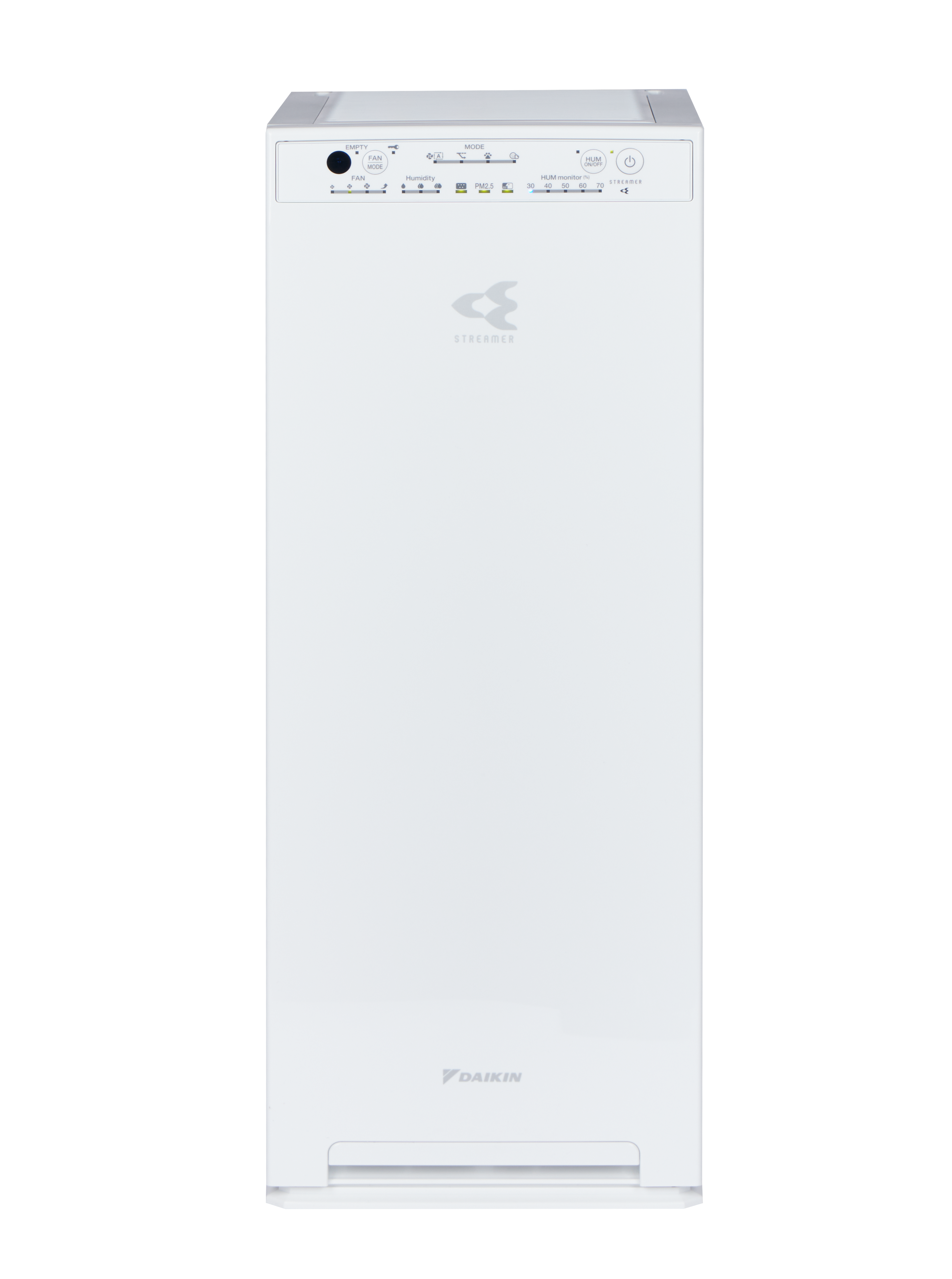 Luchtreiniger en bevochtiger Daikin MCK555, een "next generation" HEPA luchtreiniger van Daikin. De MCK555 behoort tot de succesvolle serie Flash Streamer luchtreinigers van Daikin. Dankzij bevochtiging biedt hij bescherming tegen een lage luchtvochtigheid en virussen. Met zijn Flash Streamer Technologie filtert luchtreiniger Daikin MCK555 deeltjes uit de lucht die vaak ernstige gezondheidsrisico's inhouden. De luchtzuiveraar verwijdert geurtjes, stofdeeltjes, allergenen etc. uit de lucht in een ruimte tot zo'n 82 m². De luchtreiniger en plasma-ionisator beschikt over de meest recente technologie op het gebied van luchtreiniging.