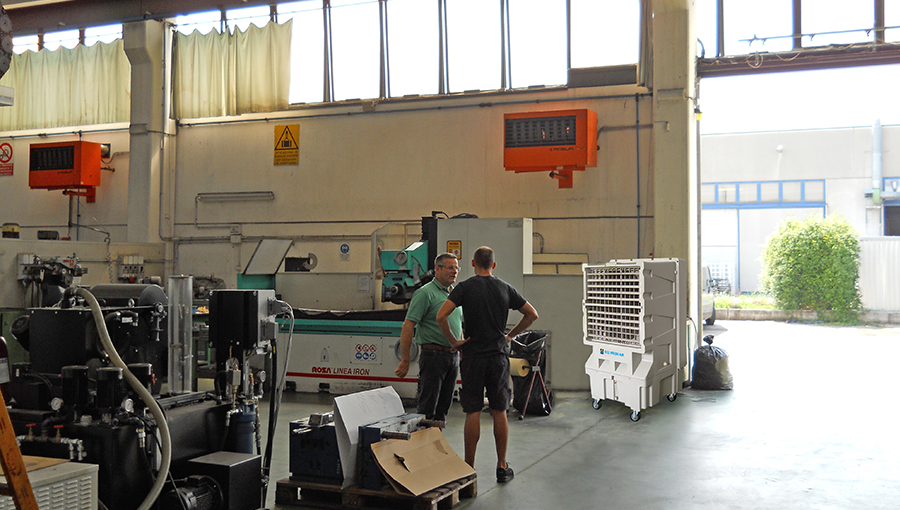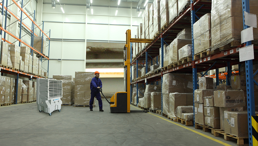 Eco Fresh Air FRE12001 voor het koelen van grote binnenruimtes, halfopen ruimtes, en buitenruimtes. Speciaal ontworpen voor het gericht brengen van koele lucht in grote, industriële en openbare ruimtes terwijl het energieverbruik minimaal is. Maximale efficiëntie tegen lage kosten! Industriële luchtkoeler StarProgetti Eco Fresh Air FRE12001 vereist geen installatie, hij kan onmiddellijk worden geplaatst en gebruikt waar hij nodig is. Verlaag de temperatuur in de omgeving met ca. 5°C/7°C, met een aangenaam oscillerend, regelbaar ventilatie-effect.
