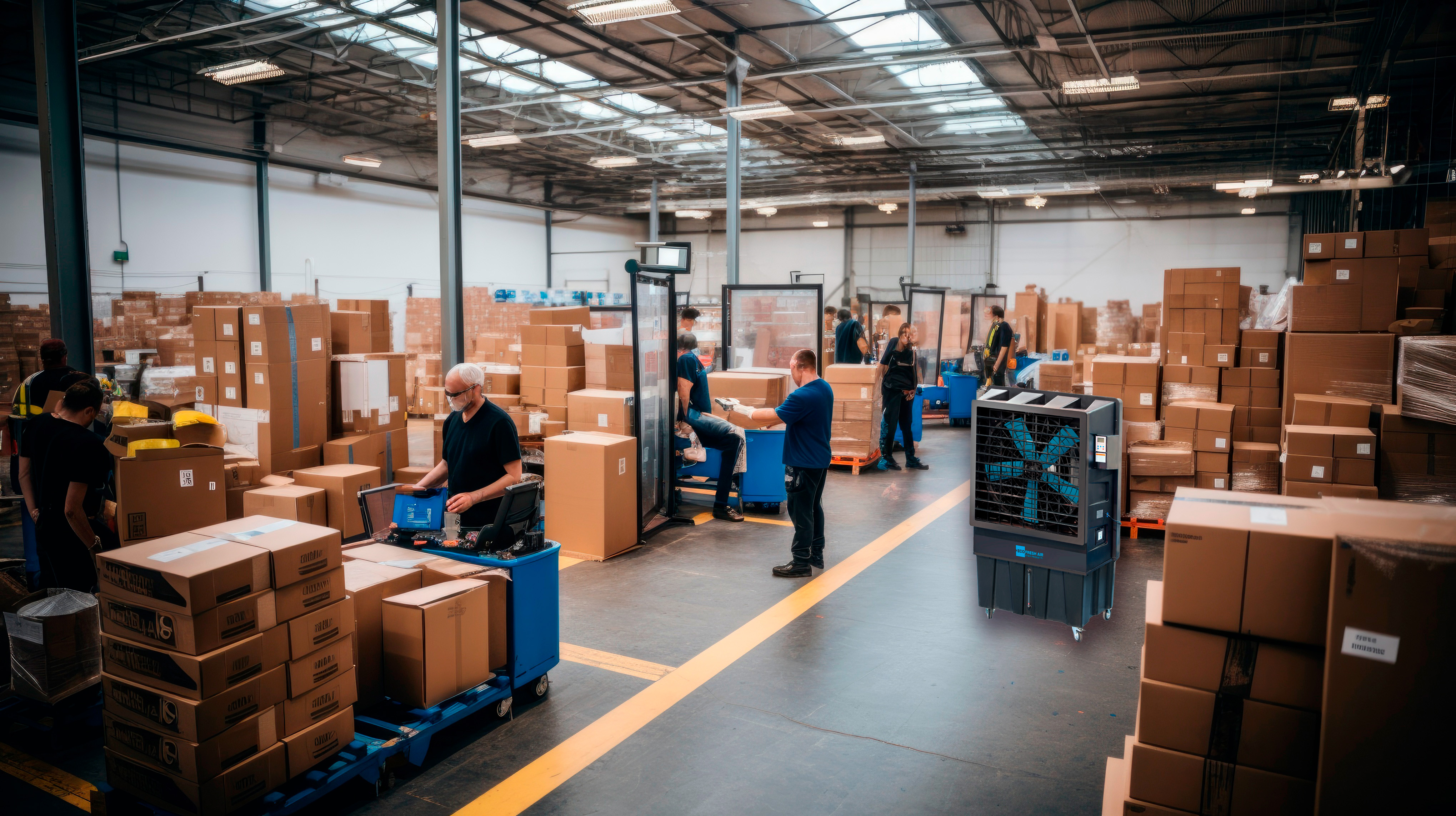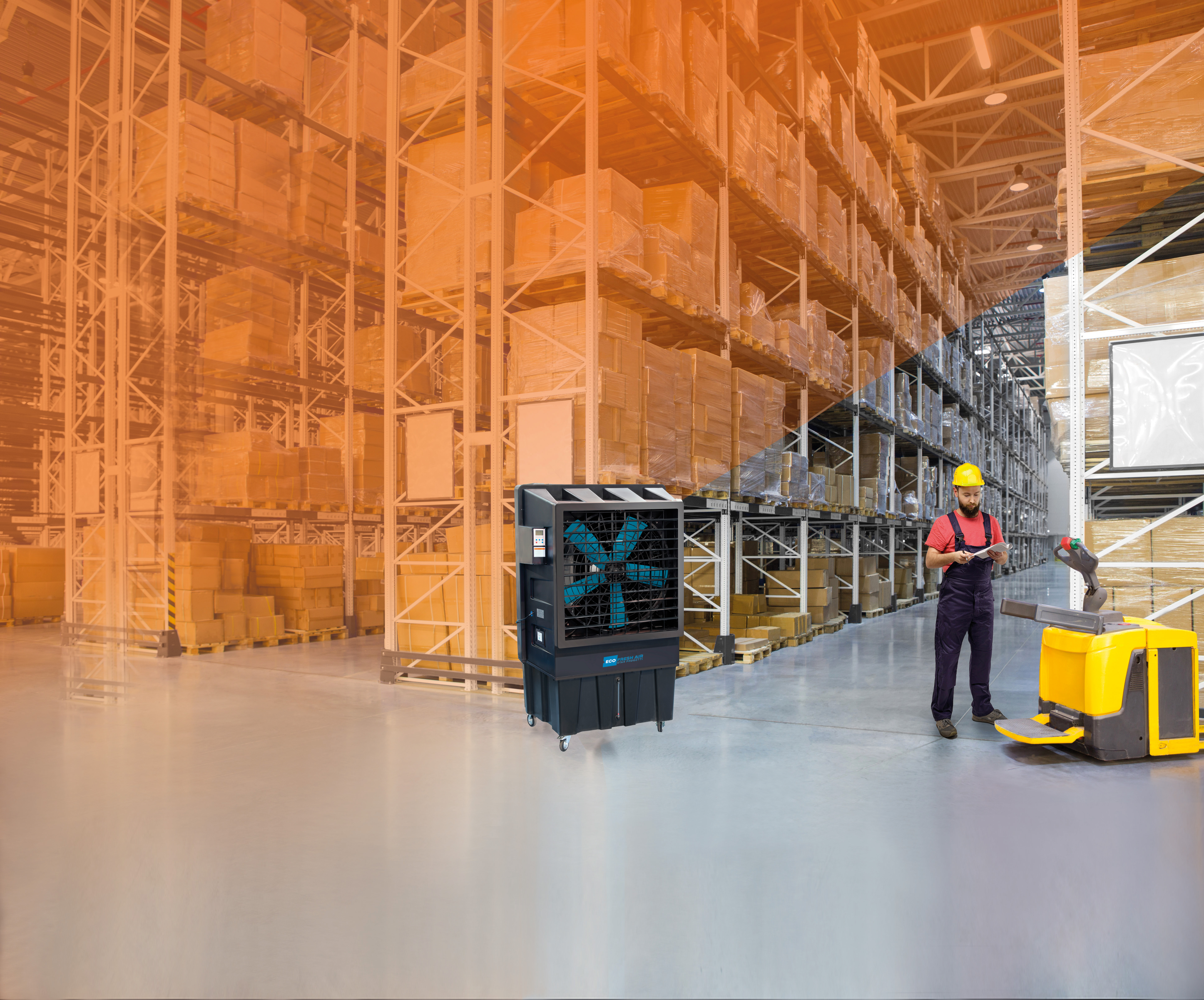 Eco Fresh Air FRE22000 is een industriële luchtkoeler met een verfriste luchtstroom van 12 m, een stoffilter en een UV-antibacterieel systeem waarmee u de verdampte lucht veilig kunt houden door de risico's van besmetting door het water in de bak te verminderen. Deze koeler is ontworpen om de luchtkwaliteit te verfrissen en te verbeteren in zeer grote omgevingen zoals industrieën, magazijnen, werkruimtes, buitenruimtes van kamers en vergelijkbare omgevingen. Industriële luchtkoeler StarProgetti Eco Fresh Air FRE22000 vereist geen installatie, hij kan onmiddellijk worden geplaatst en gebruikt waar hij nodig is. Verlaag de temperatuur in de omgeving met ca. 5°C/7°C, met een aangenaam oscillerend, regelbaar ventilatie-effect.