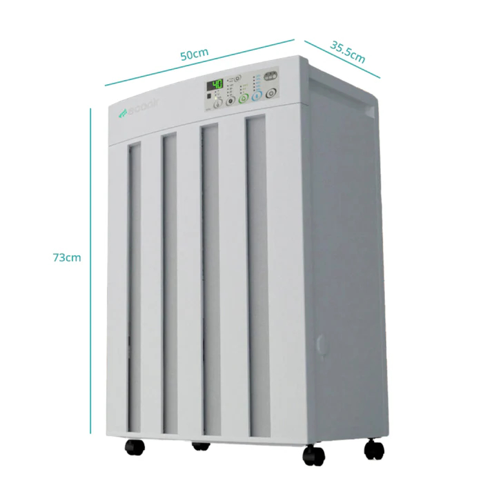 EcoAir Droid is een professionele adsorptiedroger met een hoge ontvochtigingscapaciteit tot 25 liter vocht per dag. Zijn grote temperatuurbereik onderscheidt hem van andere professionele luchtdrogers, hij droogt efficiënt bij een omgevingstemperatuur van -5°C tot 40°C. Dit grote temperatuurbereik maakt hem geschikt voor elk jaargetijde en voor onverwarmde ruimtes én verwarmde ruimtes. Droid is minder gevoelig voor uiterste omgevingstemperaturen dan een professionele condensatiedroger dat is. Hij is perfect voor krachtige luchtontvochtiging in musea, kunstgalerijen, garages, kantoren, kelders, spa's, zwembaden, sportscholen, hotels, kleedkamers, bibliotheken, supermarkten, boekwinkels, magazijnen en meer.