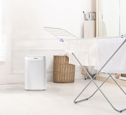 Alma is een efficiënte 2-in-1 luchtontvochtiger en luchtreiniger met een HEPA H13-filter dat 99,7% van alle zwevende deeltjes uit de lucht verwijdert. De ingebouwde sensor toont de luchtkwaliteit via kleuren en zorgt zo voor een gezond binnenklimaat. Alma verlaagt de luchtvochtigheid, voorkomt schimmelvorming en vermindert allergenen, ideaal voor mensen met allergieën. Het toestel is eenvoudig te bedienen, gemakkelijk te verplaatsen en past dankzij het elegante design in elk interieur.