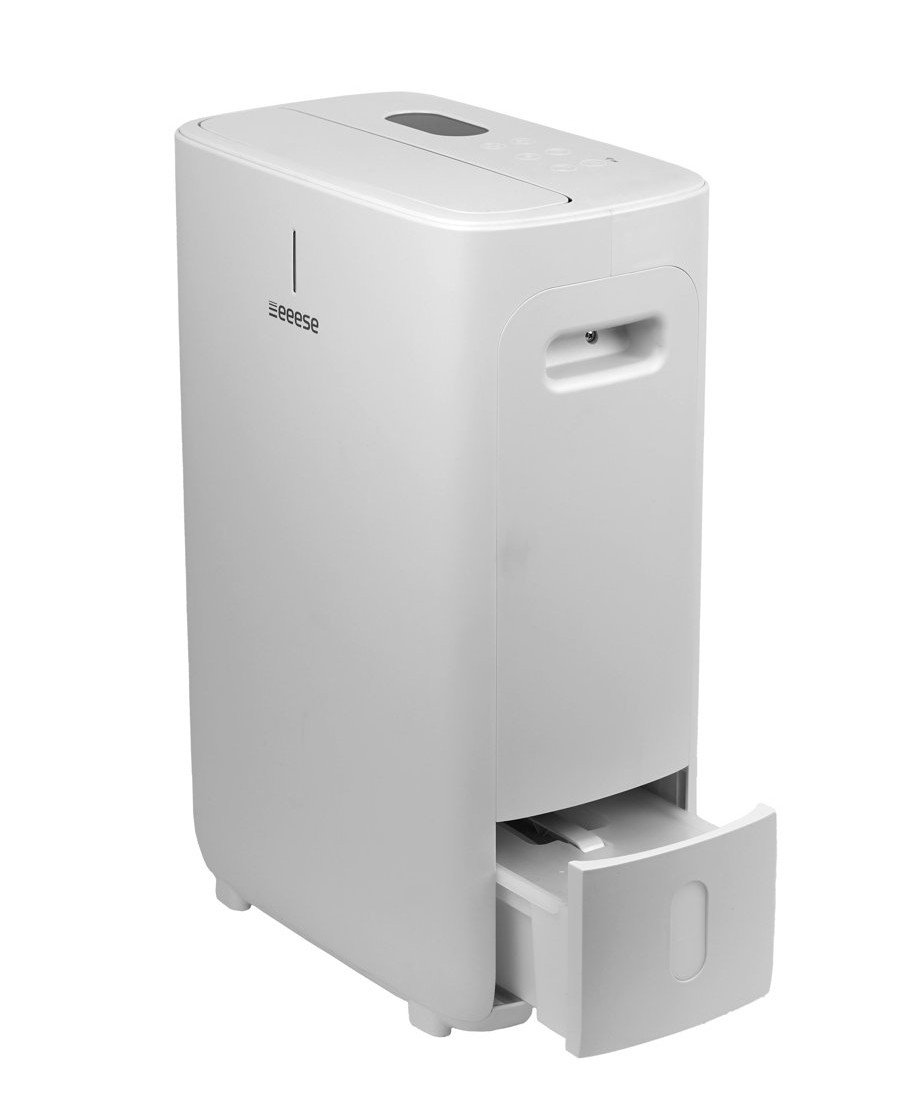 Eeese Thor – krachtige adsorptie-luchtontvochtiger voor koude ruimtes tot 0 °C Thor is een elegant ontworpen en compacte adsorptie-luchtontvochtiger, ideaal voor kelders, caravans, boten en andere koele ruimtes tot 40 m². Thor is speciaal ontwikkeld om effectief te ontvochtigen bij temperaturen tot 0 °C en beschikt over een automatische ontvochtigingsfunctie die het apparaat uitschakelt zodra het waterreservoir vol is. Dankzij de ingebouwde Wi-Fi hebt u eenvoudig en flexibel volledige controle over de luchtvochtigheid via een app op uw smartphone. Belangrijkste kenmerken van Thor Effectieve ontvochtiger voor koude ruimtes met adsorptietechnologie Wi-Fi – compatibel met Google Assistant Laag geluidsniveau Timerfunctie Automatische stop bij een volle watertank Geïntegreerde ionisator (aan/uit) Aanbevolen voor caravans, boten, onverwarmde garages, kelders en bijkeukens Effectieve ontvochtiging bij lage temperaturen – tot 0 °C dankzij adsorptietechnologie Thor onttrekt vocht uit de lucht met behulp van adsorptietechnologie, waardoor hij ook bij lage temperaturen uiterst efficiënt werkt. U kunt Thor gebruiken op de boot, in de caravan, in de kelder of andere ruimtes waar condensatie en kou vaak voorkomen. Thor behaalt bij lage temperaturen een ontvochtigingsprestatie die vergelijkbaar is met veel krachtigere compressor-ontvochtigers. Bovendien wordt de lucht die Thor uitstoot verwarmd, wat bijdraagt aan het verhogen van de temperatuur in de ruimte. Voor booteigenaren is het een goed idee om de boot tijdens de winterstalling te ontvochtigen om houtrot, nare geuren en een ongezond binnenklimaat te voorkomen. Ook voor caravans is het verstandig om deze regelmatig te ontvochtigen. Wi-Fi – bedien Thor via uw smartphone of Google Assistant De Thor-luchtontvochtiger is uitgerust met Wi-Fi, waardoor u het apparaat eenvoudig kunt bedienen en volledige controle hebt over de luchtvochtigheid via een app op uw telefoon, waar u ook bent. Slim, flexibel en innovatief! De Tuya-app van Thor is compatibel met Google Assistant. Geïntegreerde ionisator (aan/uit) De ingebouwde ionisator van Thor creëert negatieve ionen die zich binden aan positief geladen deeltjes zoals stof, bacteriën, pollen, rook en andere allergenen. Deze deeltjes klonteren samen en worden zwaarder, waardoor ze als stof neerdalen en eenvoudig kunnen worden verwijderd met een stofzuiger of doek. De ionisator helpt zo de luchtkwaliteit te verbeteren en geurtjes te verminderen. Eenvoudige luchtvochtigheidsinstelling Met Thor hebt u volledige controle over het binnenklimaat. U kunt eenvoudig de gewenste luchtvochtigheid instellen op 50 % of 60 %. Zodra het ingestelde niveau is bereikt, stopt het apparaat automatisch en start het opnieuw wanneer de luchtvochtigheid weer stijgt. Voor continue werking kan Thor ook onafhankelijk van de luchtvochtigheid blijven draaien. Een ingebouwde LED-indicator toont de huidige luchtvochtigheid in drie kleuren: Blauw: ≤ 39 % (lage luchtvochtigheid) Groen: 40 – 60 % (optimaal niveau) Rood: ≥ 61 % (hoge luchtvochtigheid) De geïntegreerde ventilatorfunctie verdeelt de droge, schone lucht gelijkmatig door de ruimte voor een goede luchtcirculatie en een comfortabel binnenklimaat. Zeer laag geluidsniveau Thor is een stille luchtontvochtiger die op een geluidsniveau van slechts 38 dB(A) kan werken – uitzonderlijk stil voor een luchtontvochtiger. Eenvoudig te verplaatsen Afhankelijk van waar u Thor nodig hebt, kunt u het apparaat makkelijk verplaatsen dankzij het geïntegreerde handvat. Omdat Thor geen ingebouwde compressor heeft, is hij bovendien aangenaam licht van gewicht. Continue afvoeroptie en automatische stop Thor is uitgerust met een watertank van 2,5 liter om het gecondenseerde water op te vangen. Door een afvoerslang aan te sluiten, kunt u het water rechtstreeks naar een afvoer leiden, zodat het apparaat continu kan werken – ideaal als u niet in de buurt bent. Zonder slang schakelt Thor automatisch uit zodra de tank vol is, en de vol-tank-indicator waarschuwt u wanneer deze geleegd moet worden. Thor – een kwaliteitsproduct van eeese air care Thor maakt deel uit van de populaire serie luchtontvochtigers van eeese air care. Alle modellen in deze serie zijn ontwikkeld met het oog op een perfecte synergie tussen kennis van het Europese klimaat, stijlvol Scandinavisch design en de nieuwste technologie.