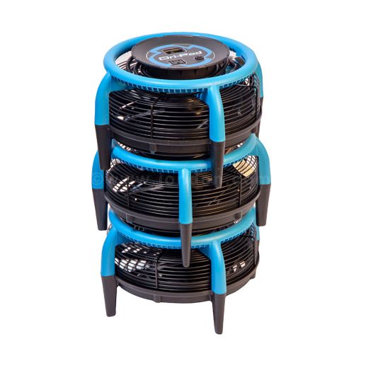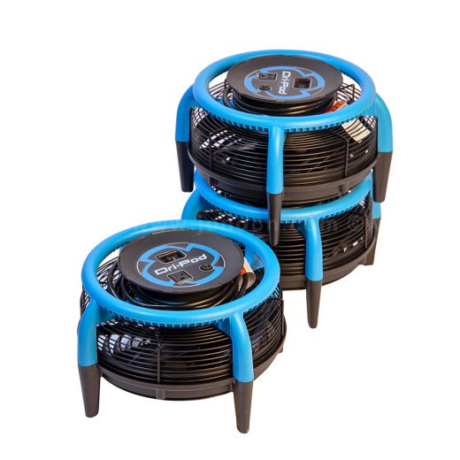 Sneller drogen en slipgevaar verminderen De DriEaz DriPod 360° mobiele vloerdroger stuurt lucht in alle richtingen over de vloer om verdamping te versnellen en het oppervlaktevocht direct te verwijderen. Tevens voorkomt snel drogen mogelijk uitglijden! Tijd besparen Gebruik de DriEaz DriPod 360° mobiele vloerdroger om tapijten of vloeren met een harde ondergrond snel te drogen na schoonmaken, lekkage of morsen. Plaats het apparaat gewoon in het te drogen gedeelte en laat hem werken terwijl u naar de volgende taak gaat. Stapelbaar De DriEaz DriPod 360° mobiele vloerdroger laat zich makkelijk stapelen om zo meer luchtcapaciteit te generen op het te drogen oppervlakte. Lichtgewicht en gemakkelijk te vervoeren. Gewoon oppakken en verplaatsen naar de volgende locatie. Het is gemakkelijk en snel!