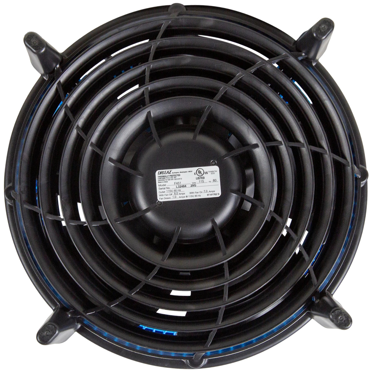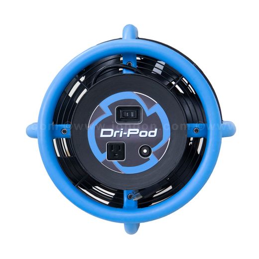 De mobiele vloerdroger DriEaz DriPod met een 360° luchtuitgang grill. Dankzij dit ontwerp trekt de DriEaz DriPod lucht van bovenaf en leidt deze over de hele vloer in een gebied van maximaal 3 meter breed. Plaats de DriEaz DriPod 360° mobiele vloerdroger eenvoudig in het midden van een kamer en droog tapijt, tegels, vinyl of hardhouten vloeren sneller dan ooit.