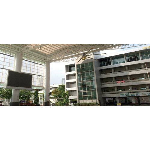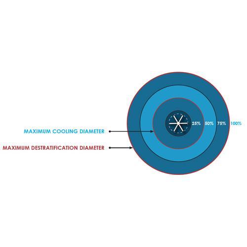 Industriële HVLS Ventilator SkyBlade STOL 1649 is ontworpen voor grote ruimtes en industriële ruimtes waar luchtrecirculatie en destratificatie belangrijk is. Met een luchtverplaatsing tot 283.000 m³/uur, voor klimaatbeheersing en optimale energie-efficiëntie. HVLS ventilator - High Volume Low Speed - met een hoge luchtcapaciteit en geschikt voor koeling, ventilatie en destratificatie in grote ruimtes. STOL staat voor 'Short Take Off & Landing'. Deze technologie vormt de basis van het aerodynamische ontwerp van de industriële ventilator en destratificator, hij kan meer lucht verplaatsen tegen een lager energieverbruik. Kies tussen verschillende bedieningsmogelijkheden. Een bedrade, digitale bediening voor één ventilator of een bedrade, digitale bediening voor meerdere - tot 63 - HVLS ventilatoren tegelijkertijd.