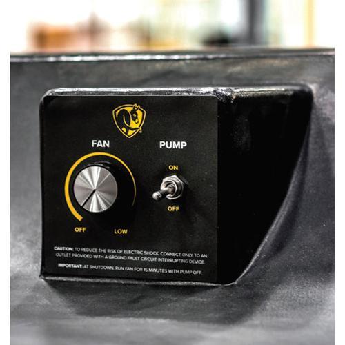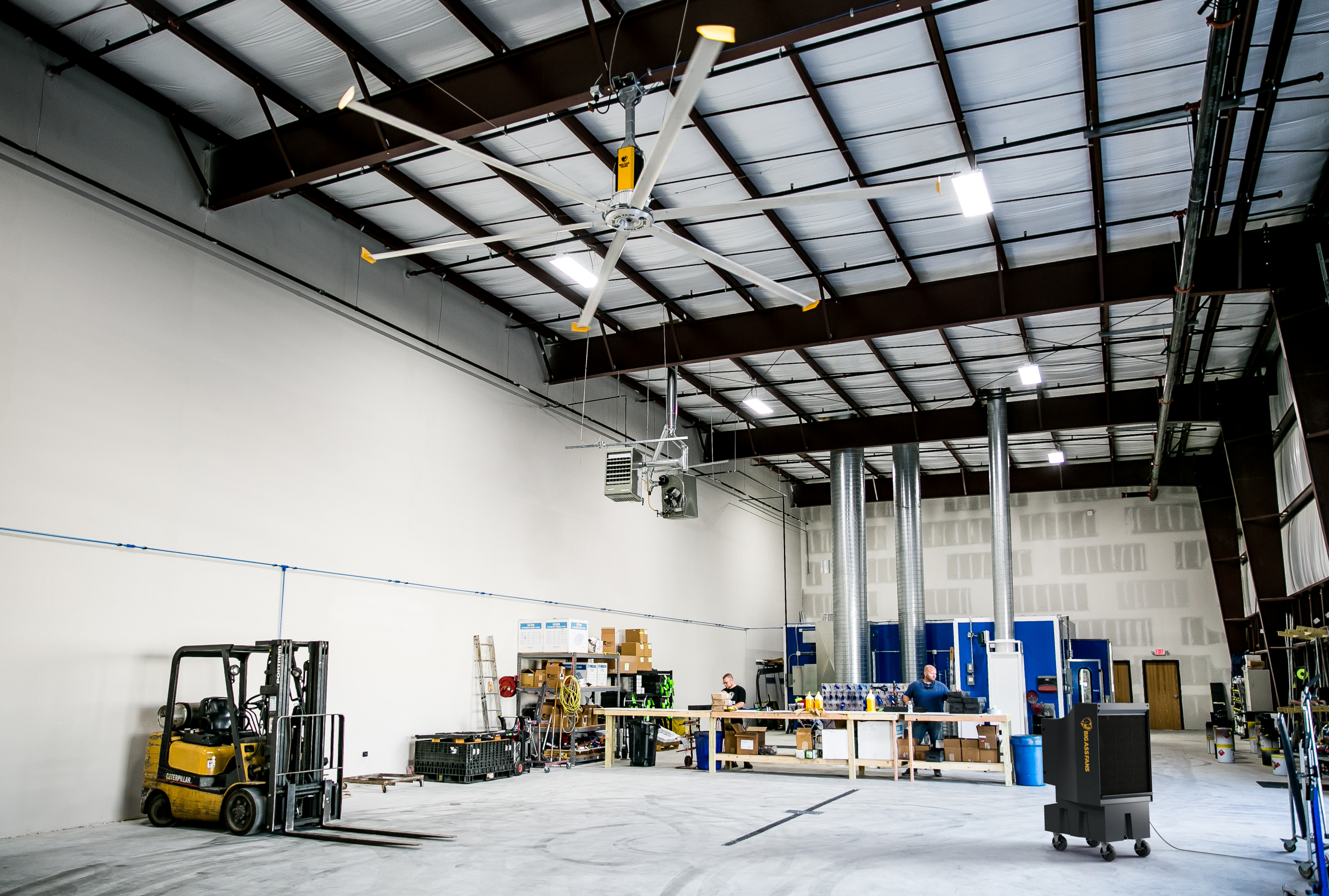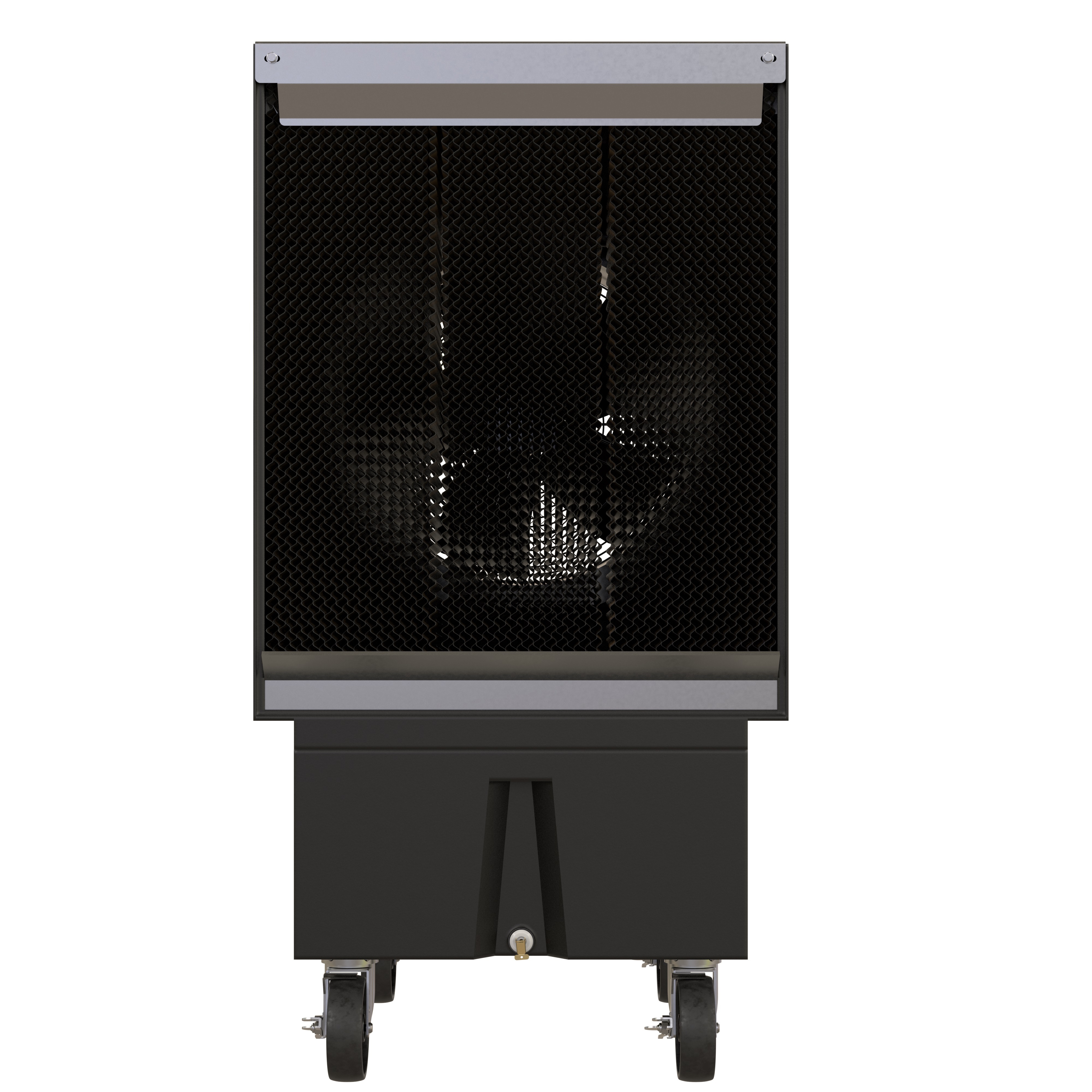 Industriële bio cooler voor efficiënt en krachtig koelen. Geschikt voor een ruimte tot 110 m². De werking van de Big Ass Fans Cold Front 300 mobiele luchtkoeler is eenvoudig. Vullen met water, stekker insteken, aanzetten en u heeft direct koeling op elke locatie. Cool Space Glacier heeft een watertank inhoud van 60 liter. Geschikt voor zowel binnen- als buitengebruik. De verrijdbare luchtkoeler heeft een stevige roto-moulded kunststof omkasting en kan daarom tegen een stootje. Roestbestendig en gemaakt voor intensief gebruik! Vullen met water door het bevestigen van een standaard slang op de slang aansluiting. Het waterniveau wordt geregeld door een interne vlotter. Wanneer het waterniveau te hoog is, wordt de watertoevoer automatisch afgesloten. Wanneer het waterniveau te laag is, schakelt de pomp automatisch uit zodat deze optimaal beschermd blijft. Dankzij de stevige industriële wielen is de Big Ass Fans Cold Front 300 makkelijk te verplaatsen en geeft de bio cooler u direct verkoeling daar waar nodig. Kenmerken: Sterke roto-moulded behuizing, UV bestendig en roestvrij. Het bevochtigingsmedium is met hars behandeld voor extra sterkte en ter voorkoming van algengroei. Aluminium ventilator, 3-bladig, 45 cm doorsnee. Snelheid variabel instelbaar van 1200 m³/uur tot 4800 m³/uur. Onderhoudsvrije circulatiepomp. Waterreservoir van 60 liter voor langdurig, onafgebroken koelen. Automatische uitschakeling bij een laag waterniveau. Eenvoudig water vullen met standaard slang of watertank. Robuuste wielen voor eenvoudig verplaatsen (met rem). Afvoerpunt voor water verwijderen en spoelen. Onderhoudsvrije, betrouwbare werking. Stille werking. Eco friendly, water als koelmiddel. Waar verzorgen Big Ass Fans luchtkoelers optimale verkoeling? Magazijnen Fabrieken Werkplaatsen en garages Defensie Zware industrie en offshore Evenementen binnen én buiten Sporthallen en sportvelden Hangars Kassen Stallen Agro-sector Restaurants en terrassen Patio's