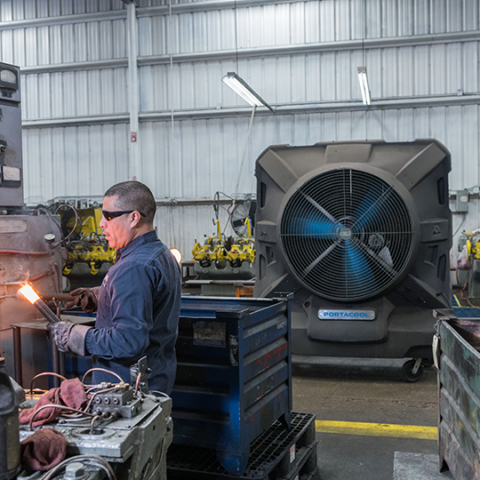 Luchtkoeler Portacool Jetstream 270 geeft koeling waar het nodig is. Geen vaste installatie, geen luchtslangen, direct koelen nadat hij met water gevuld is. Portacool Jetstream 270 is een mobiele luchtkoeler voor bedrijven, loodsen, sportfaciliteiten en buitenruimtes en is geschikt voor koeling in ruimtes tot 525 m². Portacool luchtkoelers zijn bijzonder efficiënt met energie! Een adiabatische verdampingskoeler verzorgt koeling van de omgevingslucht met water. Jetstream 270 heeft een watertank van 246 liter en een maximaal waterverbruik tot 121 liter/uur, hij schakelt zichzelf automatisch uit als de tank bijna leeg is. Gemaakt voor de industrie en soortgelijke toepassingen in veeleisende omgevingen. Portacool Jetstream 270 heeft een sterke omkasting, stevige zwenkwielen en vraagt weinig onderhoud. De Jetstream 270 koelt ruimtes tot 523 m2. Met waterpeil weergave, droogloop bescherming en regelbare ventilatorsnelheid. Wie milieuvriendelijk wil koelen, kiest voor een Portacool aircooler. Het energieverbruik is laag, het koelmiddel is water. Direct verplaatsbaar dus de mogelijkheden zijn eindeloos!