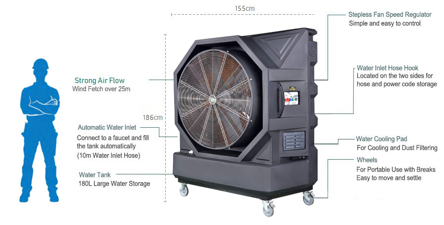 De Ya Suh Dar M602-COOL verdampingskoeler is een mobiele, adiabatische luchtkoeler voor professioneel gebruik. Dit toestel maakt deel uit van de Ya Suh Dar-serie en is bijzonder geschikt voor het koelen van zowel binnen- als buitenruimtes.