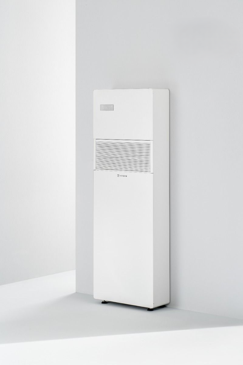 Dankzij de monoblock uitvoering is er geen buitenunit nodig. De unit wordt volledig binnen geplaatst en gebruikt twee muurgaten naar buiten voor luchttoevoer en afvoer. Hierdoor is de Innova 2.0 Vertical bijzonder geschikt voor appartementen, renovaties, monumentale panden of situaties waar een traditionele split-airco niet toegestaan is.