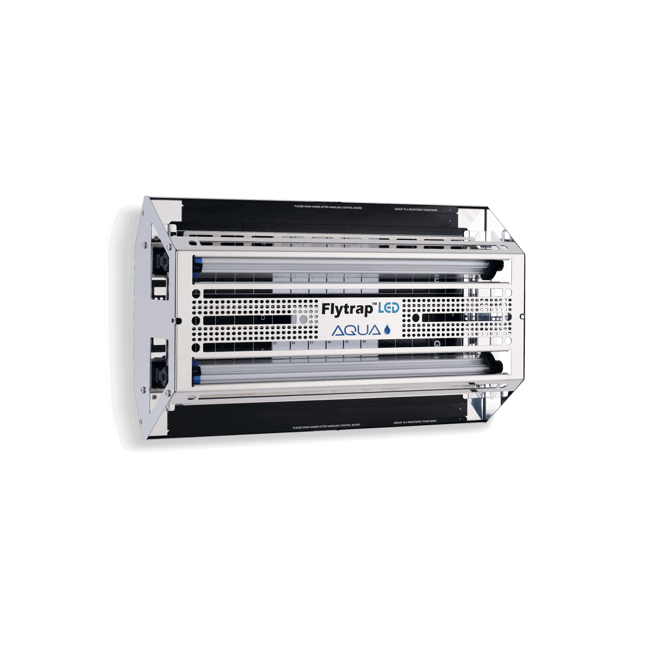 De Insect-O-Cutor Flytrap LED Aqua is een robuuste en hygiënische insectenlamp die speciaal is ontwikkeld voor professionele omgevingen waar effectieve insectenbestrijding en hoge hygiënestandaarden essentieel zijn. Dankzij de energiezuinige UV LED-technologie trekt het toestel vliegende insecten effectief aan en vangt deze op een discrete lijmplaat. Deze Aqua uitvoering is ontworpen voor veeleisende omgevingen en beschikt over een IP66-beschermingsgraad, waardoor het toestel beschermd is tegen stof en waterstralen. Hierdoor is de insectenlamp bijzonder geschikt voor locaties zoals voedselproductie, commerciële keukens, opslagruimtes en andere industriële toepassingen waar standaard insectenlampen minder geschikt zijn. De stevige roestvrijstalen behuizing zorgt voor een duurzame constructie en een hygiënisch ontwerp dat eenvoudig te reinigen is. Dankzij de efficiënte LED-technologie en de grote lijmplaat biedt de Flytrap LED Aqua betrouwbare en continue insectenbestrijding met minimaal onderhoud.