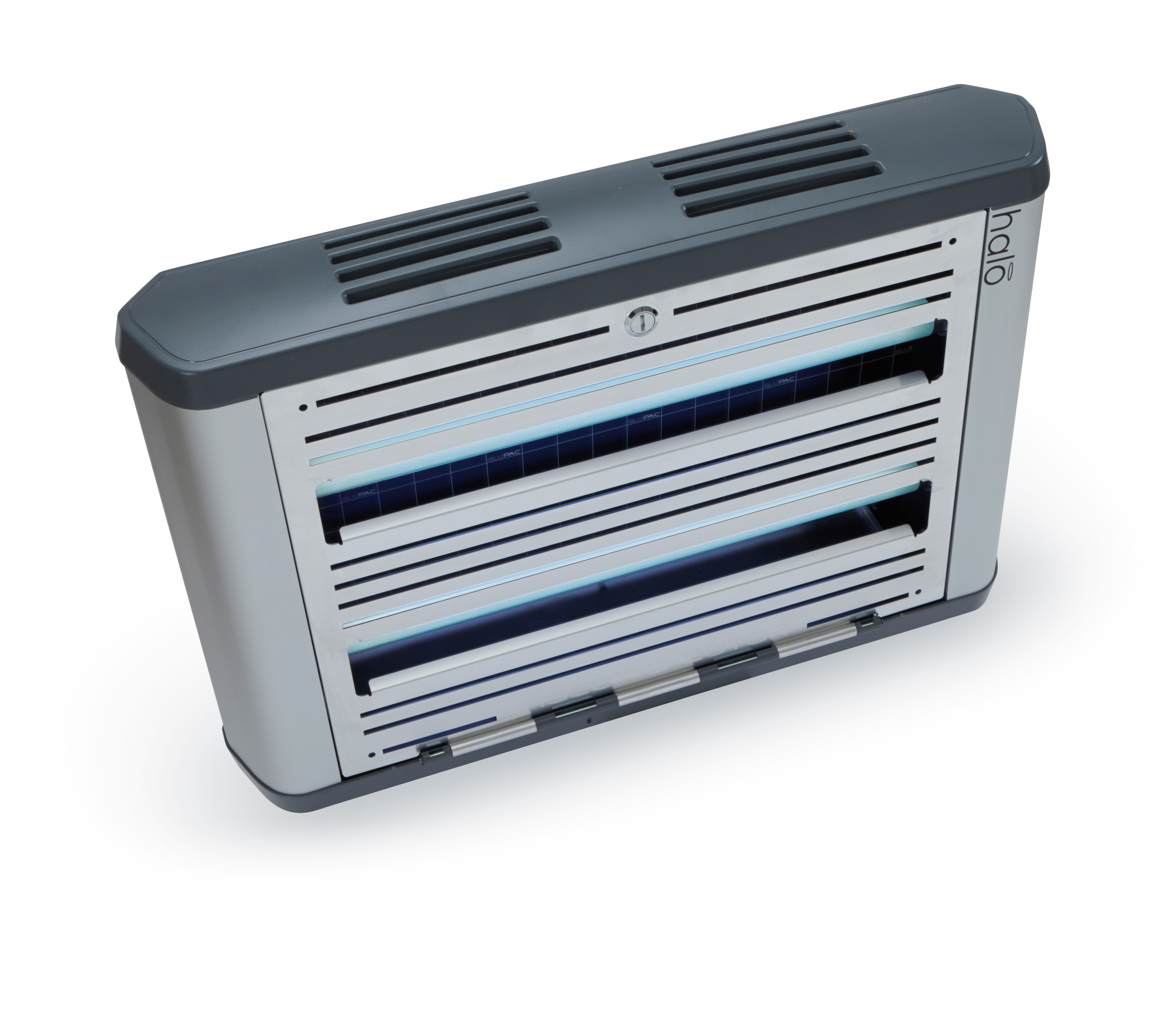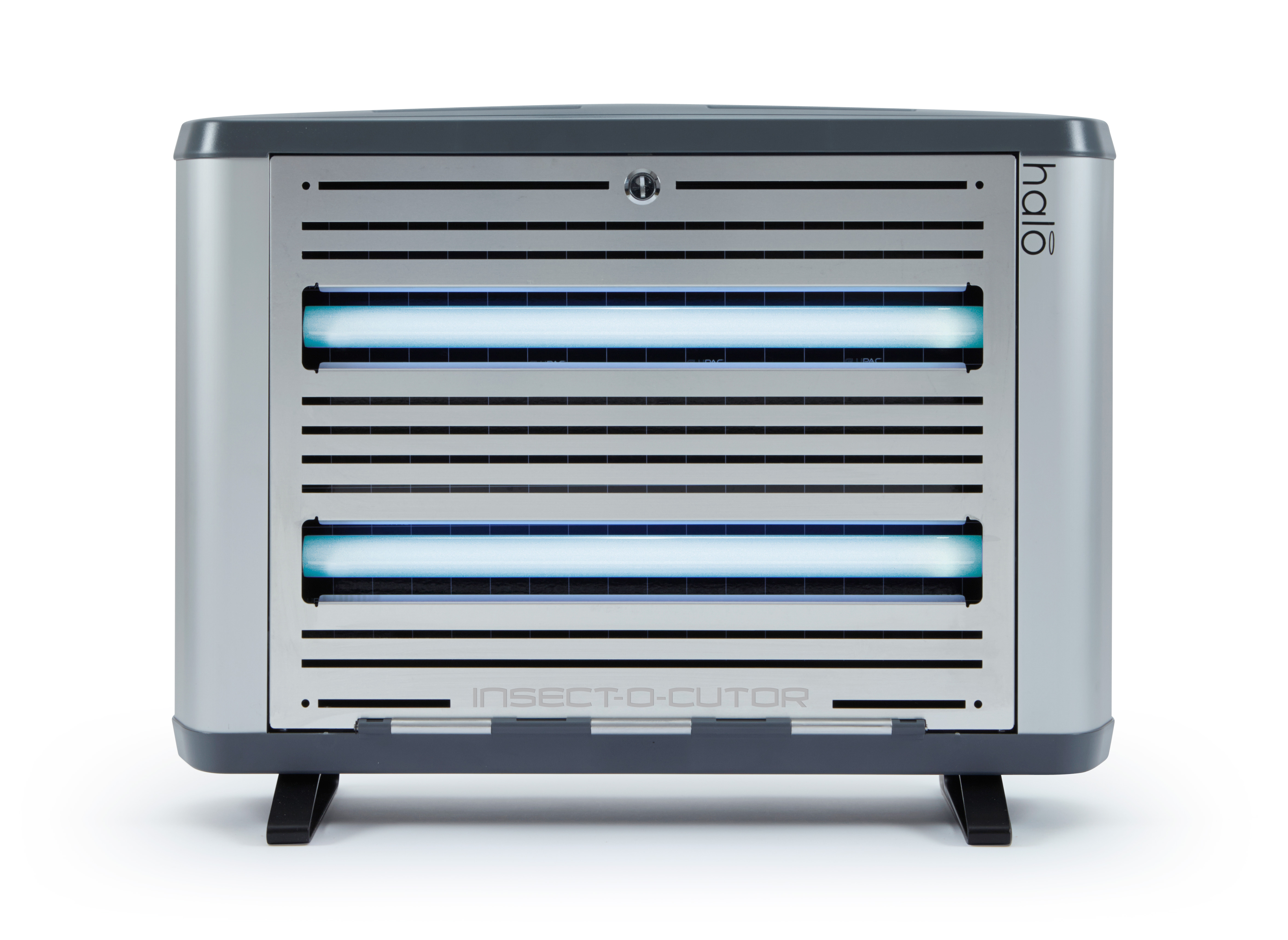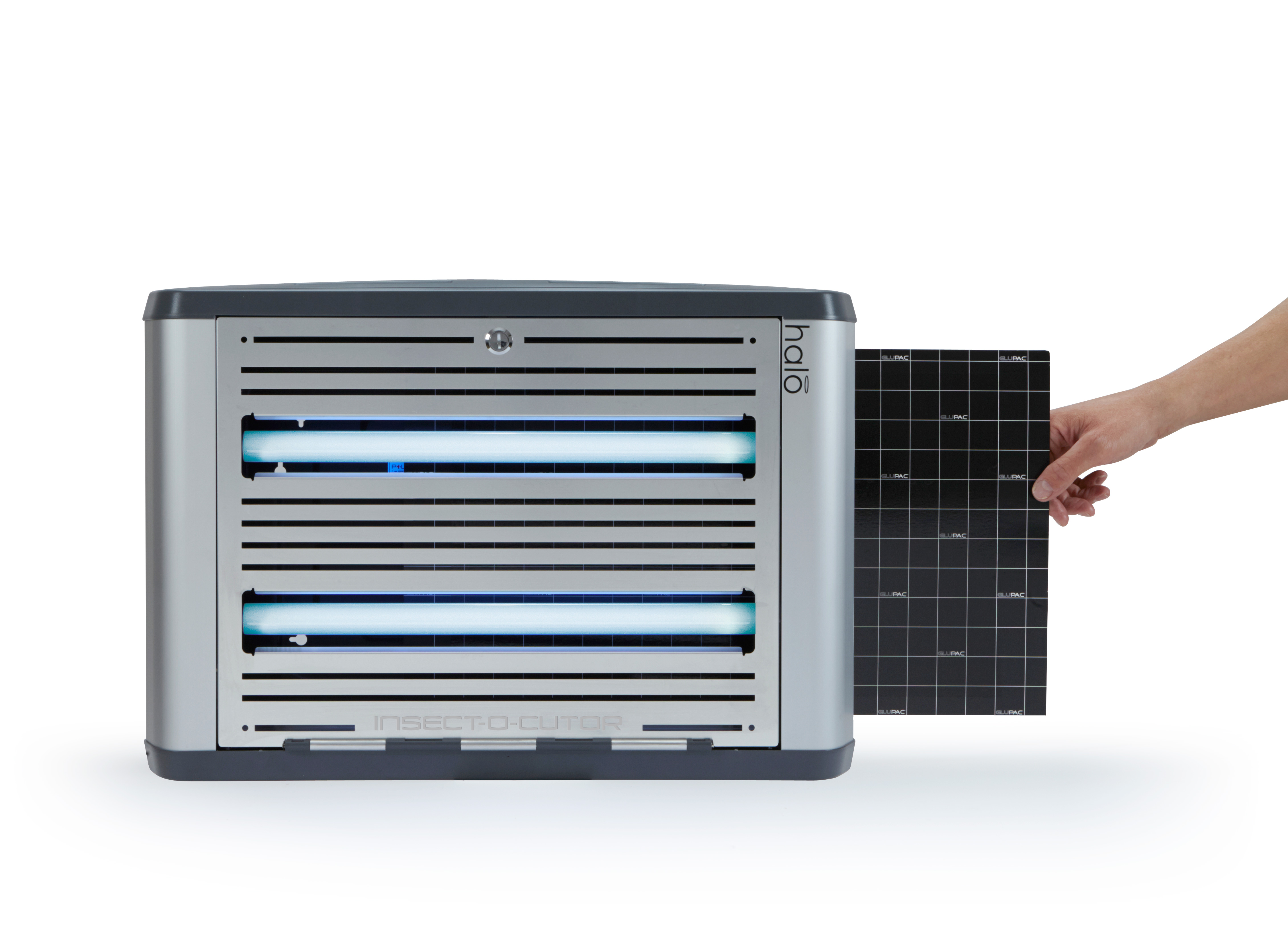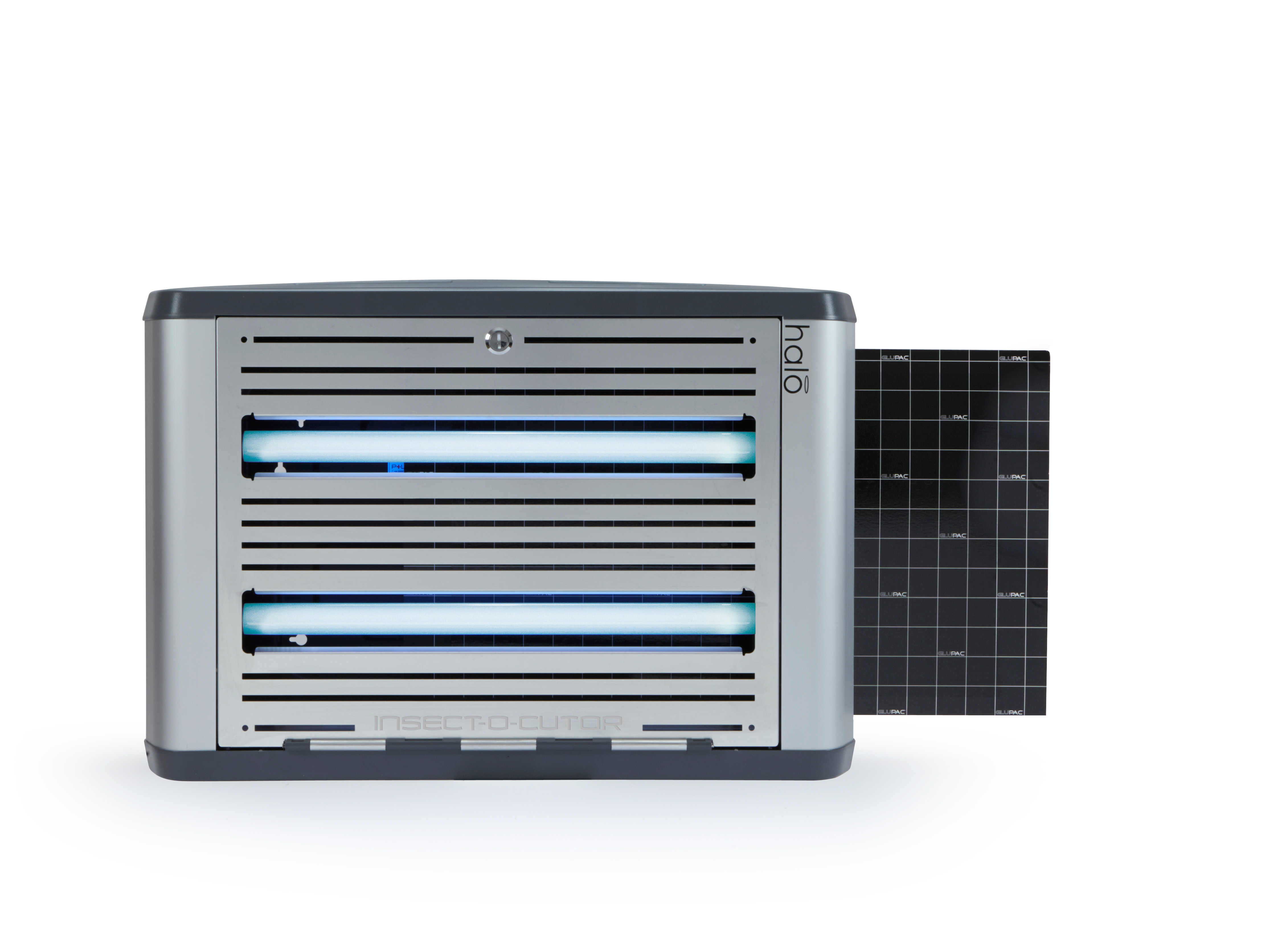 De Insect-O-Cutor Halo30 UV-insectenval maakt deel uit van de uitgebreide Halo®-serie en is geschikt voor gebruik in professionele omgevingen. Deze innovatieve insectenvanger combineert hoge prestaties met een modern en discreet design. Het apparaat met lijmplaat is uitgerust met de gepatenteerde Glupac®-lijmplaat met UV-stabilisator en heeft een dekkingsoppervlak van 80 m². Het robuuste model is voorzien van FEP-gecoate, breukbestendige UV-lampen en is eenvoudig te onderhouden dankzij de scharnierende voorzijde. De montageopties zijn veelzijdig: horizontale of verticale wandmontage of vrijstaand met speciaal ontworpen poten. Halo®-serie insectenvallen: Insect-O-Cutor Halo15, 30 (enkel- of dubbelzijdig) en 45 Watt. Voor vochtige ruimtes is er de Insect-O-Cutor Halo45 Aqua UV-insectenval (enkel- of dubbelzijdig) met IP45-classificatie.