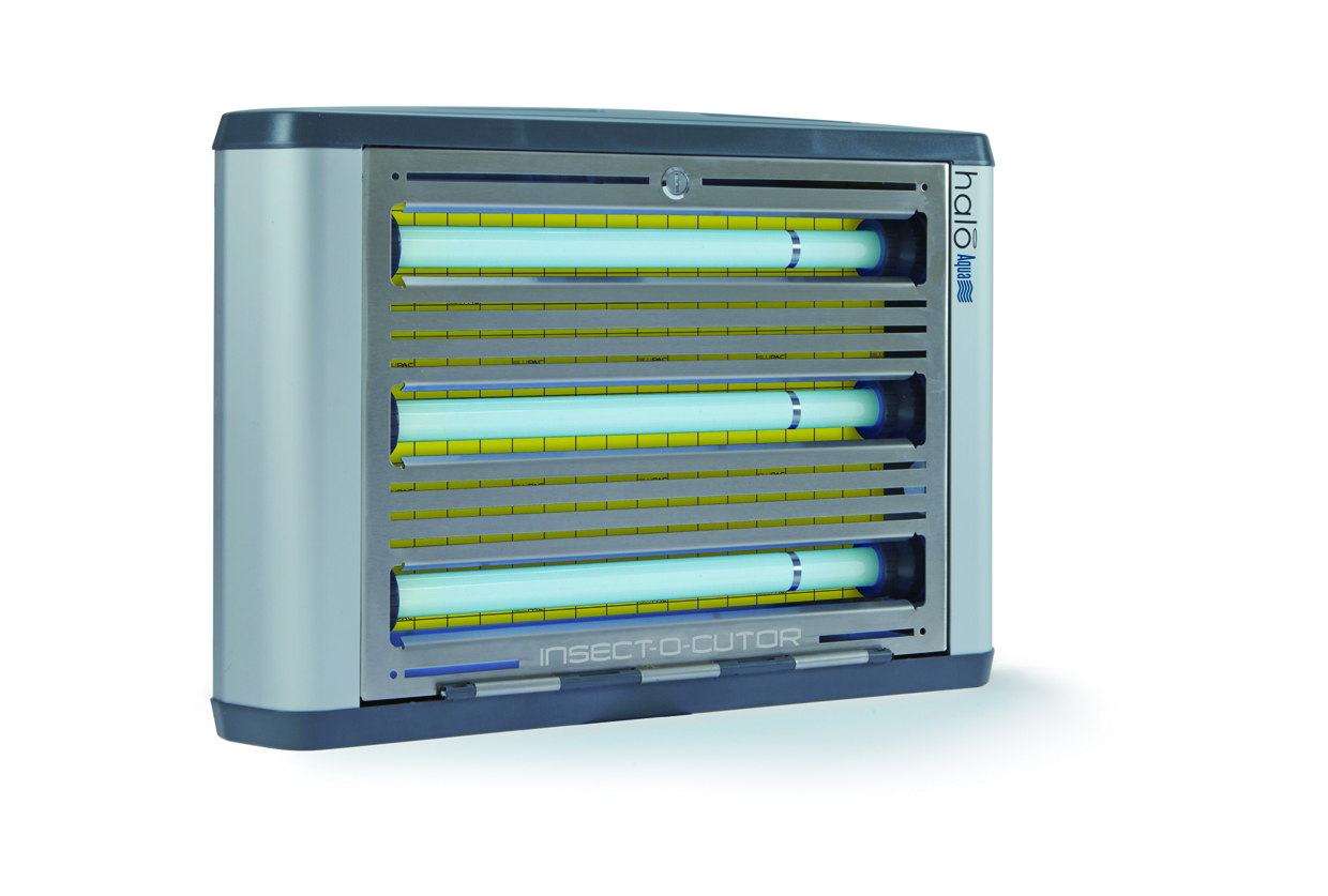 Insect-O-Cutor Halo 45 Aqua UV-insectenval voor veeleisende (vochtige) omgevingen De Insect-O-Cutor Halo 45 Aqua UV-insectenval maakt deel uit van de uitgebreide Halo®-serie en is ontworpen voor gebruik in veeleisende omgevingen. Dit model is de ideale oplossing voor vochtige ruimtes of locaties die nat gereinigd moeten worden. De insectenvanger is IP45-geclassificeerd (spatwaterdicht) en combineert hoge effectiviteit met een modern en discreet design. Het apparaat met lijmplaat is uitgerust met de gepatenteerde Glupac®-lijmplaat met UV-stabilisator en heeft een bereik van 120 m². De Halo 45 Aqua is een enkelzijdig model met FEP-gecoate, breukbestendige UV-lampen. Deze krachtige UV-lampen zorgen aantoonbaar voor een effectievere en langdurige aantrekking van vliegende insecten dan conventionele UV-lampen. In combinatie met de Glupac®-lijmplaat levert de Halo ongeëvenaarde prestaties. De gepatenteerde, flexibele lichtuitlaatkleppen aan de zijkanten zorgen voor een 180°-lichtverspreiding voor maximale efficiëntie. Ze kunnen worden gesloten om verkleuring van UV-gevoelige oppervlakken te voorkomen. De standaard FEP-coating (Teflon®) biedt extra veiligheid en maakt de lampen geschikt voor gevoelige of veeleisende toepassingen. De Glupac®-lijmplaat is een innovatieve, gepatenteerde technologie met UV-bestendige drooglijm en feromonen voor maximale effectiviteit. De robuuste behuizing is volledig vervaardigd uit hoogwaardig roestvrij staal (316) en voorzien van een kantelbare voorplaat die volledig toegang biedt tot de UV-lampen en lijmplaten. Onderhoud is eenvoudig en gereedschap is niet nodig. De aluminium opvanglade is gemakkelijk te verwijderen en te legen. Montage is mogelijk aan de muur, zowel verticaal als horizontaal. Toepassingsgebieden: voedingsindustrie, keukens, slagerijen, markthallen. Ook verkrijgbaar als Insect-O-Cutor Halo 2x45 Aqua UV-insectenval (dubbelzijdig – 240 m²). Andere modellen uit de Halo®-serie zijn verkrijgbaar in 15, 30 (enkel- of dubbelzijdig) of 45 Watt (zonder IP45-classificatie). Kenmerken: Bereik: 120 m² Krachtige, breukbestendige UV-lampen FEP-gecoate UV-lampen voor veeleisende omgevingen Glupac®-lijmplaat met gepatenteerde technologie en UV-stabilisator Flexibele, gepatenteerde lichtuitlaatkleppen Horizontale of verticale wandmontage IP45-geclassificeerd (spatwaterdicht) Eenvoudig onderhoud zonder gereedschap HACCP-conform Robuuste constructie volledig van roestvrij staal Onafhankelijk getest en gecertificeerd volgens RoHS en EU-normen Inbegrepen: 3 x 15W UV-lampen en 1 gele lijmplaat Alleen geschikt voor gebruik binnenshuis. UV-apparaten mogen niet buiten worden gebruikt, omdat niet-selectieve insectenvangers ook nuttige insecten kunnen aantrekken. Bijzonderheden: IPX4