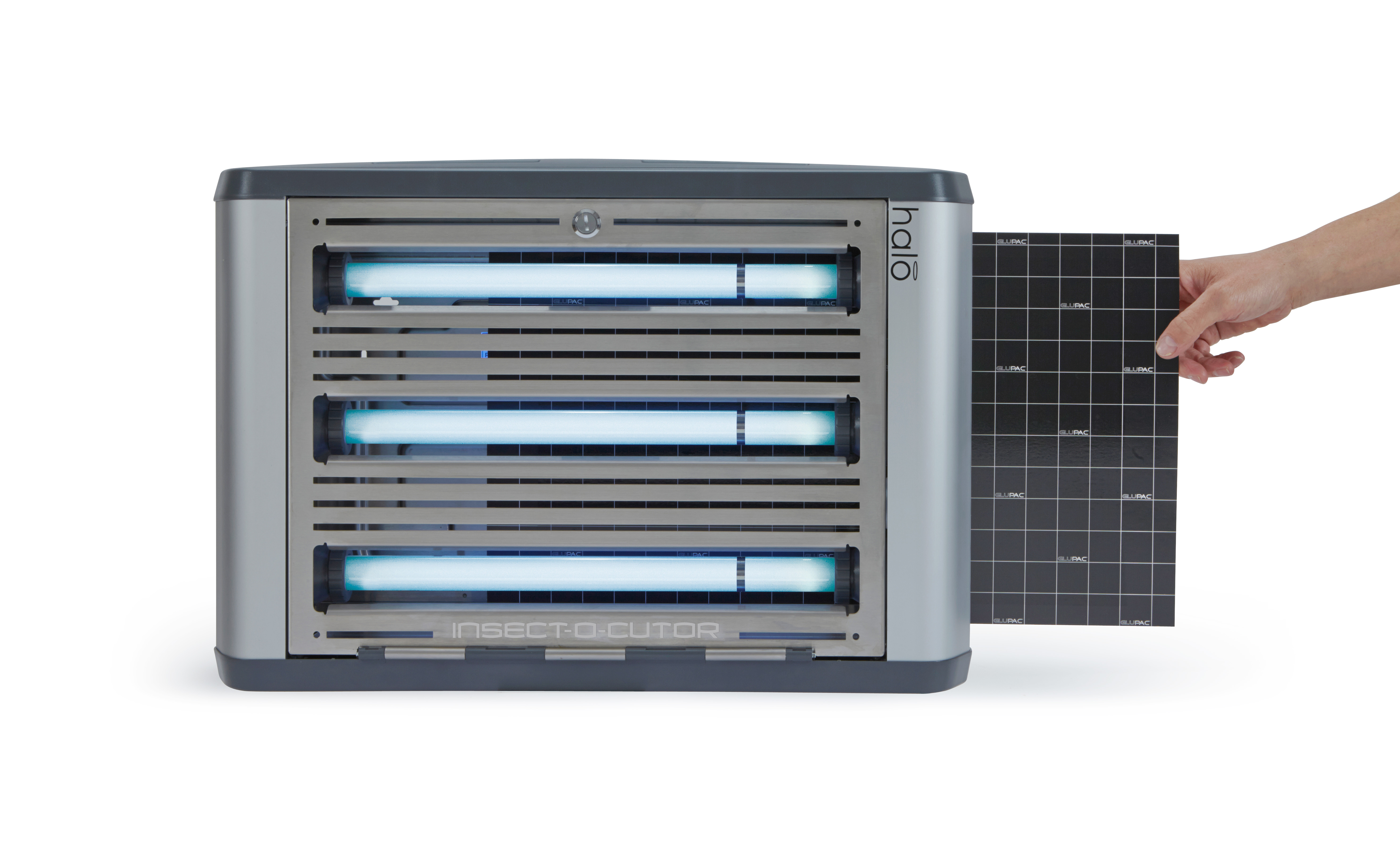 Insect-O-Cutor Halo 45 Aqua UV-insectenval De Insect-O-Cutor Halo 45 Aqua UV-insectenval maakt deel uit van de uitgebreide Halo®-serie en is ontworpen voor veeleisende omgevingen. Dit model is de ideale oplossing voor vochtige ruimtes of locaties die nat gereinigd moeten worden. De insectenvanger is IP45-geclassificeerd (spatwaterdicht) en combineert hoge effectiviteit met een modern en discreet design. Het apparaat met lijmplaat is uitgerust met de gepatenteerde Glupac®-lijmplaat met UV-stabilisator en heeft een bereik van 120 m². Het dubbelzijdige model is voorzien van FEP-gecoate, breukbestendige UV-lampen en de robuuste behuizing is gemaakt van roestvrij staal 316. Het onderhoud is eenvoudig dankzij de kantelbare voorzijde, en de montageopties zijn veelzijdig: zowel horizontale als verticale wandmontage zijn mogelijk. Ook verkrijgbaar als Insect-O-Cutor Halo 2x45 Aqua UV-insectenval (dubbelzijdig – 240 m²). Andere modellen uit de Halo®-serie zijn verkrijgbaar in 15, 30 (enkel- of dubbelzijdig) of 45 Watt (zonder IP45-classificatie).