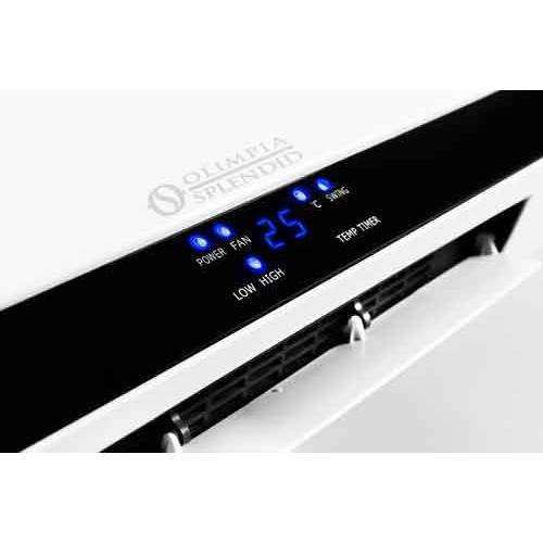Keramische ventilatorkachel Olimpia Splendid Caldo Up T is een modern vormgegeven elektrische wandkachel die in iedere ruimte past. Deze wandkachel is onder andere uitgevoerd met een open raam detectie, een programmeerbare week timer en een automatische swing flap. De elektrische verwarming is geschikt voor een ruimte tot 25 m². De keramische verwarming is aan te sturen met de meegeleverde afstandsbediening. Keramische verwarming Olimpia Splendid Caldo Up T, de kenmerken Elektrische wandkachel. LED Display. Afstandsbediening (batterij niet inbegrepen). Programmeerbare Timer (week). 3 standen: (alleen ventilatie / low/ high). Automatische swing. Beveiliging tegen oververhitting. Vorstbeveiliging. Open raam detectie.