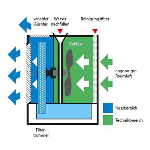 Gezond leven en werken met een optimale luchtvochtigheid! Warme lucht kan meer vocht vasthouden dan koude lucht, daarom kan in dezelfde ruimte de luchtvochtigheid gedurende het jaar sterk verschillen. Het percentage vocht in de binnenlucht wordt uitgedrukt in % relatieve vochtigheid. Een relatieve luchtvochtigheid van 50-60% wordt als optimaal beschouwd. In een woonkamer is 20-23 °C de ideale kamertemperatuur, in een slaapkamer max. 18 °C en in werkruimten 18-23 °C. Bij deze verschillende temperaturen, zelfs bij een lage temperatuur tijdens de wintermaanden, kan een aangename luchtvochtigheid worden bereikt. Met de Brune B280 STD luchtbevochtiger kunt u de lucht in middelgrote ruimtes bevochtigen en optimale omstandigheden voor wonen of werken in stand houden. Luchtbevochtiger Brune B280 STD dient handmatig te worden gevuld. Voor volledig automatische luchtbevochtiging kiest u de uitvoering B280 AWZ met een vaste wateraansluiting. Luchtbevochtiger Brune B280 STD, de belangrijke kenmerken Elektronische besturing Direct gereed voor gebruik, zonder installatie: in een vaste opstelling of mobiel Duidelijk bedieningspaneel met weergave van waterniveau, ventilatorstanden, ionisatiemodus, actuele en ingestelde luchtvochtigheid Duurzame, corrosievrije en onderhoudsvriendelijke kunststof behuizing Instelbare luchtroosters Overzichtelijk bedieningspaneel Laag stroomverbruik Hoge veiligheid door 24 volt DC-werking Laag geluidsniveau Luchtzuivering met behulp van voorfilter en ionisatie 8-standen ventilator en een extra automatische functie Grote verdamping door groot filteroppervlak Luchtbevochtiger geschikt voor leidingwater en behandeld water Bevochtiging zonder druppelvorming en zonder kalkaanslag in de kamer Mobiele luchtbevochtiger met wielen Toepassingen Woonkamers Kantoren Muziekruimtes Bibliotheken Musea Galeries Serverruimtes Callcenters Laboratoria Boekhandels Drukkerijen Ziekenhuizen Werking van luchtbevochtiger Brune B280 De Brune luchtbevochtiger B280 werkt volgens het principe van koude verdamping. Het is algemeen bekend dat dit werkingsprincipe het beste is voor luchtbevochtiging. De lucht wordt aangezogen en door een speciaal stoffilter aan de achterzijde van het apparaat gevoerd, de lucht ondergaat een eerste reiniging. Vervolgens wordt de droge lucht door het bevochtigingsfilter met het grote verdampingsoppervlak gevoerd, hier wordt het vocht aan de lucht toegevoegd. Na behandeling wordt de bevochtigde lucht door de uitblaasopening aan de voorkant van het apparaat terug in de ruimte gebracht. Aan de bovenkant van de luchtbevochtiger bevinden zich extra, instelbare luchtroosters waarmee de bevochtigde lucht optimaal gestuurd kan worden. Luchtverplaatsing De Brune B280 Luchtbevochtiger heeft acht handmatige en één automatische ventilatorstand. In de automatische modus past het apparaat automatisch de snelheid, en dus het bevochtigingsvermogen, aan de actuele vraag aan. Hoe groter het verschil tussen de werkelijke en ingestelde vochtigheid, hoe hoger de prestaties (luchtopbrengst) van de ventilator. Als de werkelijke waarde de ingestelde luchtvochtigheid nadert, vermindert de luchtbevochtiger automatisch zijn vermogen. Er kunnen daarnaast acht handmatige ventilatorstanden worden ingesteld. Dit biedt u de mogelijkheid om de prestaties en het geluid van de Brune B280 luchtbevochtiger aan te passen aan uw eigen wensen. Bediening Het bedieningspaneel van de Brune B280 Luchtbevochtiger geeft u snel toegang tot de functies van het apparaat en geeft een overzicht van de huidige situatie: vochtigheidswaarde, ventilatormodus, waterniveau (vol of leeg) en ionisatie (aan of uit) worden weergegeven of kunnen worden aangepast. Bovendien kan de positie van het overzichtelijke bedieningspaneel worden ingesteld voor perfecte toegankelijkheid. Luchtvochtigheid regelen De Brune B280 Luchtbevochtiger heeft een interne vochtigheidssensor die continu de actuele luchtvochtigheidswaarde meet. Het percentage luchtvochtigheid in de ruimte wordt op het display getoond. Nadat de gewenste streefwaarde voor de luchtvochtigheid is ingesteld, neemt het apparaat zelfstandig de regeling over en zorgt ervoor dat de gewenste waarde wordt bereikt. In het geval dat bijzonder nauwkeurige vochtigheidsmetingen nodig zijn, is de Brune B280 Luchtbevochtiger optioneel verkrijgbaar met een Hygrostaat die vrij in de ruimte kan worden geplaatst. Desinfecteren door een UV-C Lamp Lucht- en waterzuivering met behulp van UV-C straling. Deze Brune B280 is uitgerust met een UV-C-lamp voor desinfectie. De centrale positie van de lamp zorgt ervoor dat het water in de tank, de secundaire lucht en het binnenste verdampingsfilter worden blootgesteld aan UV-C-stralen, waardoor een kiemverminderend effect wordt gecreëerd. Ionisatie De concentratie Ionen en de verhouding tussen positief en negatief geladen ionen in de ruimtelucht zijn bepalend voor de luchtkwaliteit. Door ionisatie van de Brune B280 Luchtbevochtiger kan de kwaliteit van de lucht, en daarmee het comfort, worden verhoogd. Tijdens ionisatie wordt de lucht bovendien schoongemaakt, de ionen binden zich met stofdeeltjes in de lucht. Waterniveau indicatie De Brune B280 STD Luchtbevochtiger controleert zelf het niveau van de watertank. Zodra de tank leeg is, schakelt het apparaat automatisch uit. Op het bedieningspaneel gaat de indicator voor water bijvullen branden zodat u weet dat de bevochtiger moet worden bijgevuld. Toetsenbord vergrendelen De Brune B280 Luchtbevochtiger heeft een toetsenbord vergrendeling die door middel van een toetsencombinatie wordt geactiveerd. Deze functie vergrendelt de invoer op het bedieningspaneel. Opzettelijke of onopzettelijke wijzigingen van de ingestelde parameters door onbevoegde personen kunnen dus worden voorkomen. Filter Het verdampingsfilter van de Brune B280 Luchtbevochtiger bestaat uit een filterschuim dat door zijn speciale structuur een bijzonder groot verdampingsoppervlak heeft. Dit draagt aanzienlijk bij tot de hoge verdampingsprest