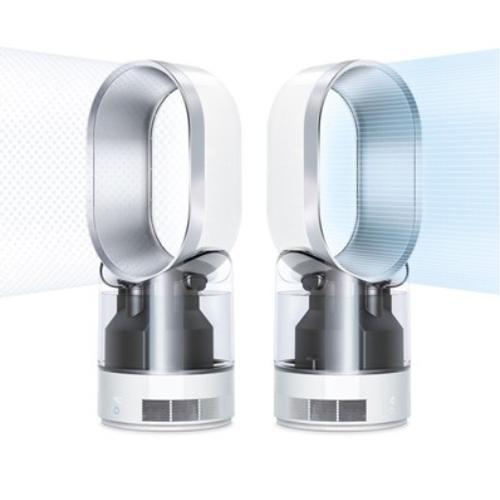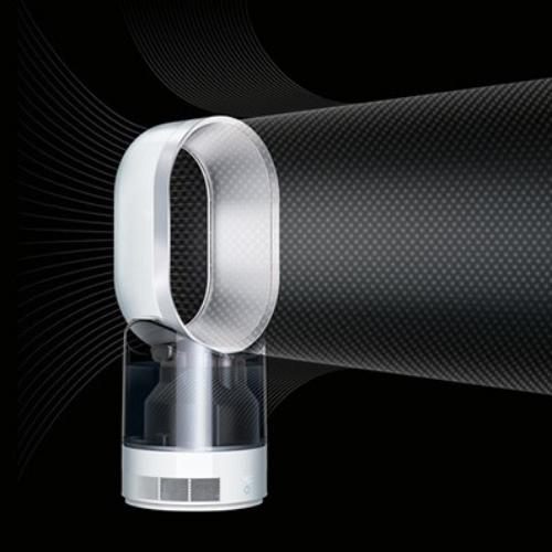 Dyson luchtbevochtiger AM10 zonder bladen. Dyson heeft de AM10 luchtbevochtiger ontworpen met het doel lucht zeer gelijkmatig en hygiënisch te bevochtigen. De trillingsvrije Dyson luchtbevochtiger AM10 verspreidt nevel snel in de kamer. Gelijkmatige luchtbevochtiging voor een aangenaam binnenklimaat.