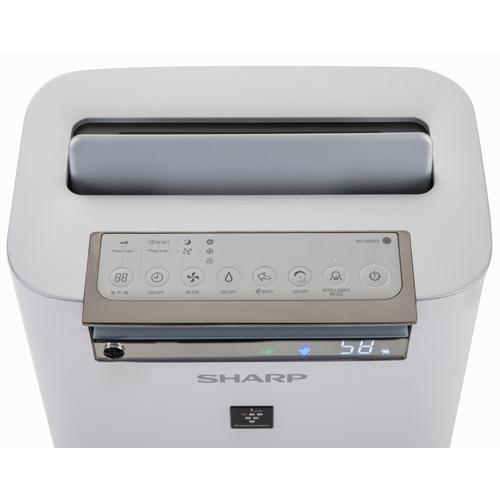 De Sharp KC-G50EUW Luchtreiniger en bevochtiger is een plasmacluster luchtreiniger met programma's voor luchtreiniging zoals een automatisch pollen programma. Verrijdbare luchtreiniger met HEPA-, Geur & Koolstoffilter en plasmacluster ionen. De Sharp KC-G50EUW is een compacte luchtreiniger en bevochtiger, en uitgevoerd met 'Plasmacluster Technologie'. Geschikt voor een ruimte tot 100 m³ (38 m²). De Sharp KC-G50EUW is uiterst stil met een geluidsniveau van maar 19 d(B)A. Dubbele luchtzuivering via filters en ionen en drie ventilatorsnelheden inclusief 'Auto stand'. Met een speciaal koolstoffilter wat de geur uit de ruimte haalt en een afwasbaar luchtbevochtigingsfilter. Maximale luchtverplaatsing van 306 m³/uur en een bevochtigingscapaciteit van 450 ml/uur. Automatisch licht dimmen via een lichtsensor, zodat u ook 's nachts geen last heeft van het licht op het display. Watertank met ergonomische draaghendel. Sensoren voor fijnstof, temperatuur, vocht en licht. Tevens uitgevoerd met een anti-bacterieel HEPA filter en een luchtvochtigheid indicator in procenten. Speciale pollen, 'Ion Shower', en PCI Spot programma's. 'Clean Sign' indicator met zeven standen en een aparte fijnstof indicator. De Sharp KC-G50EUW is makkelijk verrijdbaar met een beveiliging op één van de wielen. Met een indicator voor het bijvullen van de watertank, ON/OFF Timer (14/8 uur) en voorzien van lamellen tegen stof. Ter beveiliging tevens voorzien van een kinderslot. Voorzien van de 7 standen clean sign indicator. Sharp, Be Original