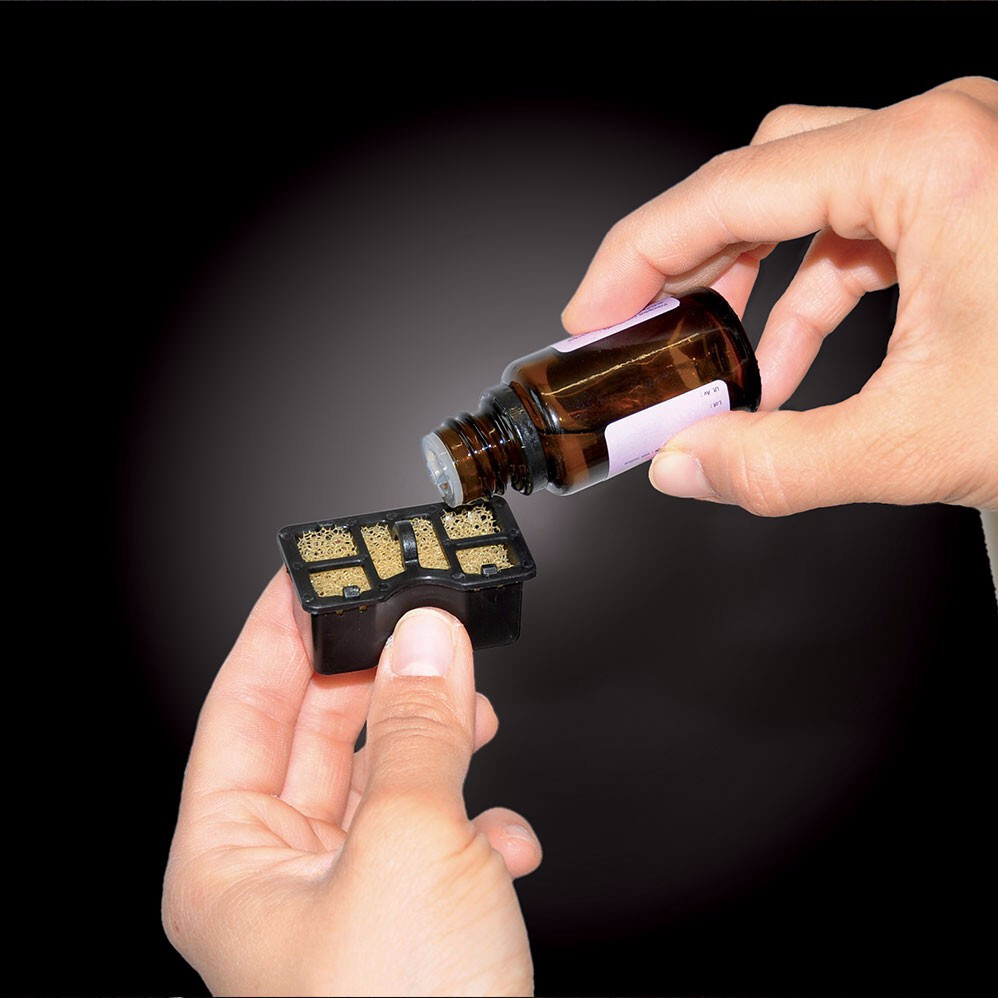 In de slaapkamer werkt Oskar Little onopvallend - de LED verlichting wordt in de nachtmodus gedimd. Luchtbevochtiger Oskar Little bezit een reservoir voor het toevoegen van geuroliën. Geurolie zorgt voor een aangename en persoonlijke ervaring.