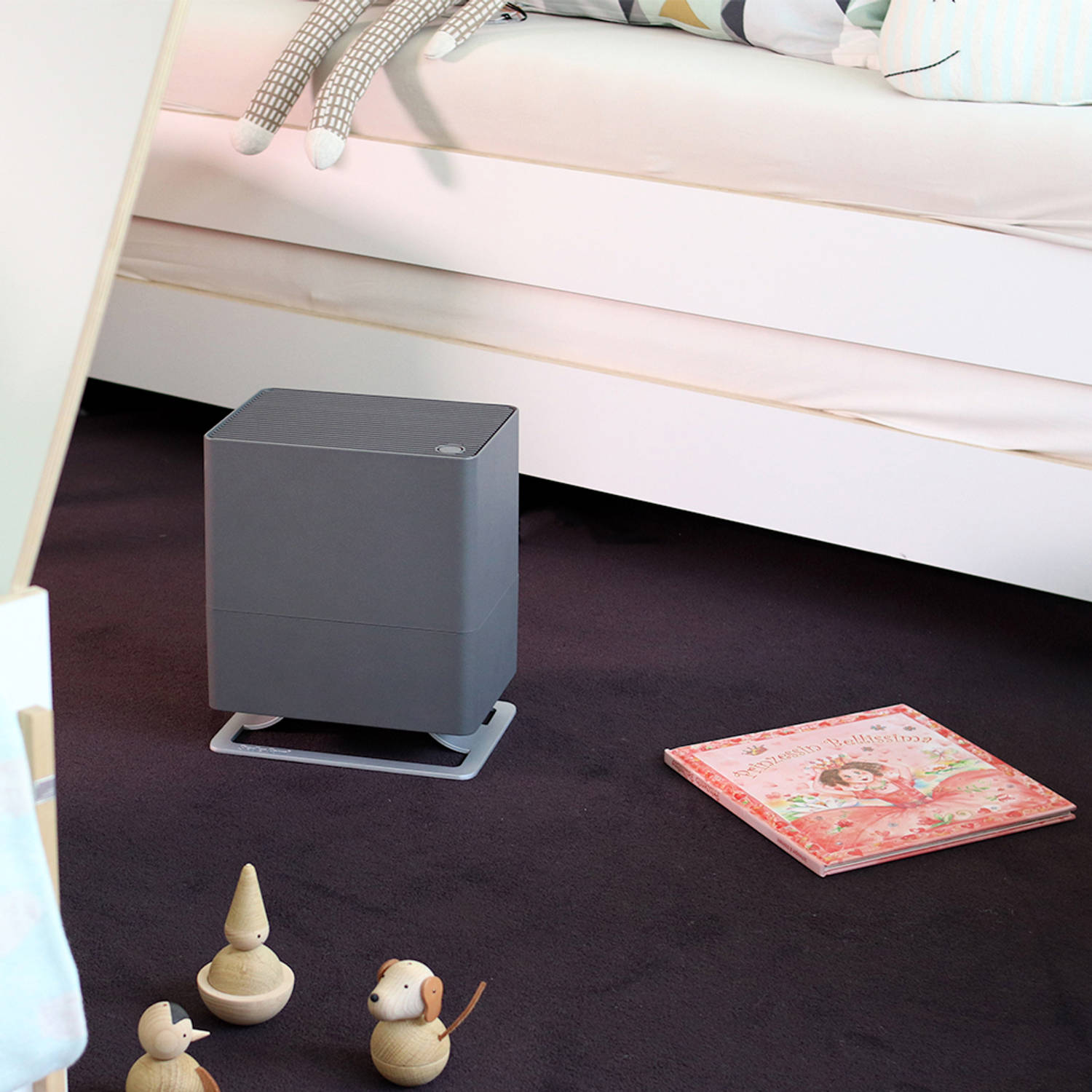 Een markante luchtbevochtiger dankzij zijn kubische vorm en stijlvolle kleur. Wanneer de lucht bevochtigd dient te worden met een gering stroomverbruik, dan is Oskar Little de aangewezen luchtbevochtiger. De bevochtiger schakelt automatisch uit bij een leeg reservoir en er zijn 2 ventilatiestanden (Hi / Lo). In de slaapkamer werkt Oskar Little onopvallend - de LED verlichting wordt in de nachtmodus gedimd. Luchtbevochtiger Oskar Little bezit een reservoir voor het toevoegen van geuroliën. Geurolie zorgt voor een aangename en persoonlijke ervaring.