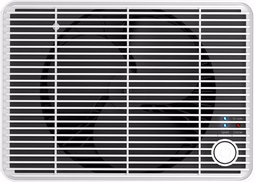 De bevochtiger schakelt automatisch uit bij een leeg reservoir en er zijn 2 ventilatiestanden (Hi / Lo).