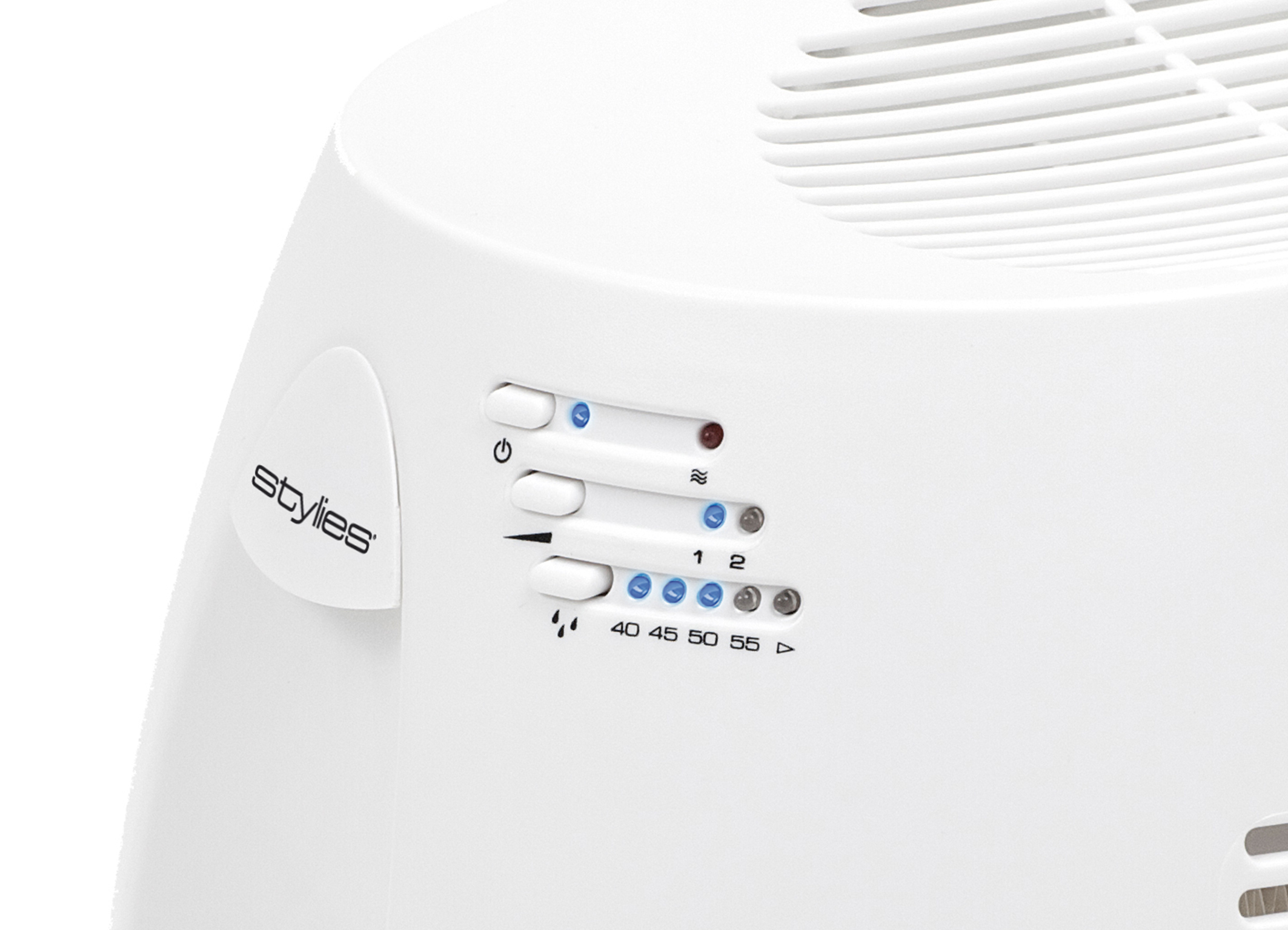 Koudwaterverdamper: De Stylies Orion bevochtiger is een stille luchtbevochtiger die geschikt is voor een woonkamer of grote slaapkamer tot 50 m² (150 m³).