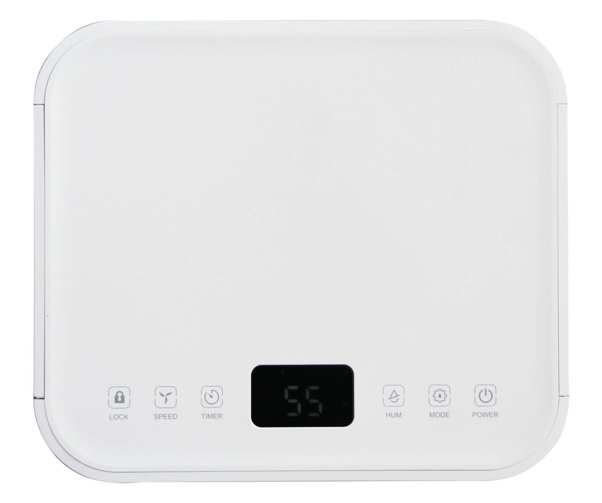 Luchtontvochtiger voor ruimtes tot 40m², de centrale ledstrip en het intelligente display tonen de vochtigheid in de ruimte Soft-touch bedieningspaneel met zeer nauwkeurige led-indicator en hygrostaat met instelbare luchtvochtigheid (30-80%) Uitgerust met 3 modi: automatisch om de werking automatisch te regelen, afhankelijk van de ingestelde temperatuur in vergelijking met de omgevingstemperatuur; LAUNDRY, de eenheid werkt continu, met maximale snelheid om het drogen van de was te bevorderen; slaap, de eenheid werkt bij lage ventilatiesnelheid en het display wordt uitgeschakeld Beschikt over een luchtreinigingsfilter op de aanzuiging, die voor het reinigen kan worden verwijderd en tot lage temperaturen van 5 °C tot 35 °C kan worden gebruikt Uitgerust met in- en uitschakeltimer (1-24 uur), vol alarm en snelkoppeling voor continue condensaatafvoer Het beschikt over een automatisch ontdooisysteem en heeft het natuurlijke koelmiddel zonder invloed op de wereldwijde verwarming