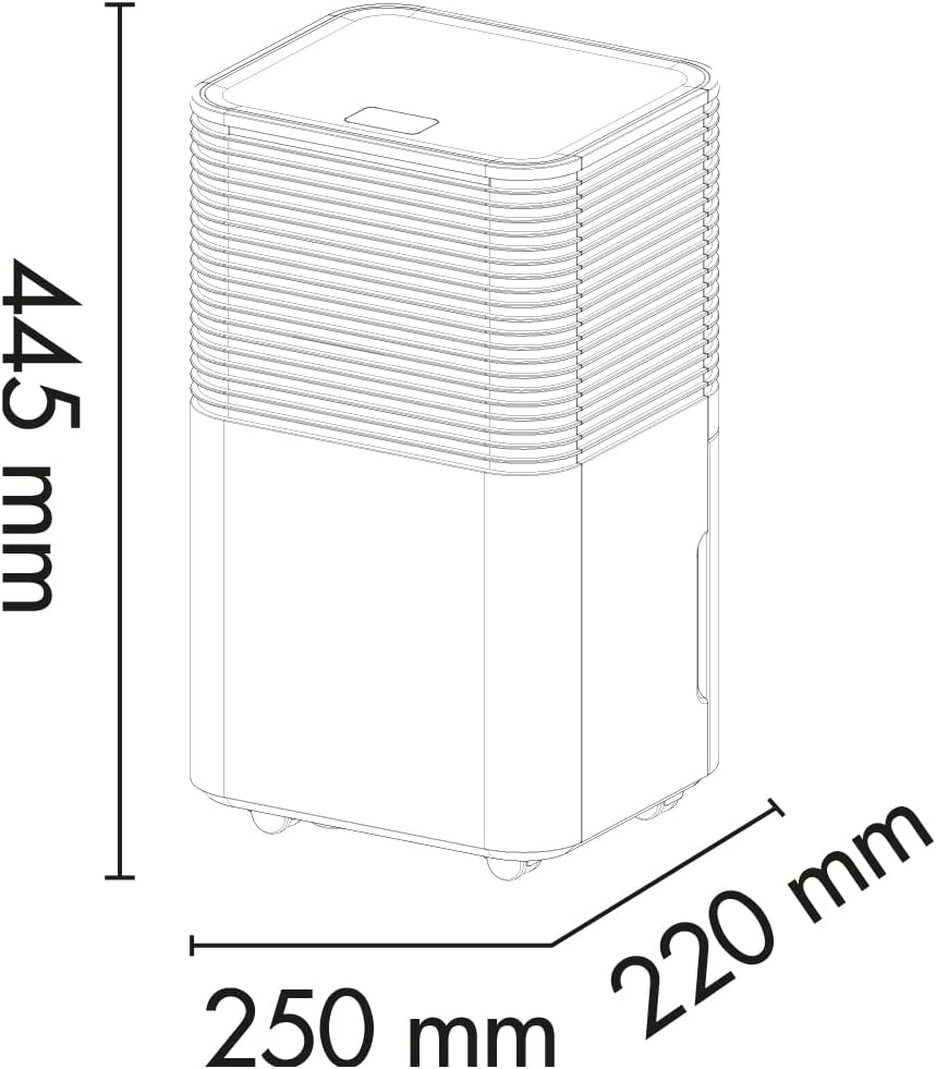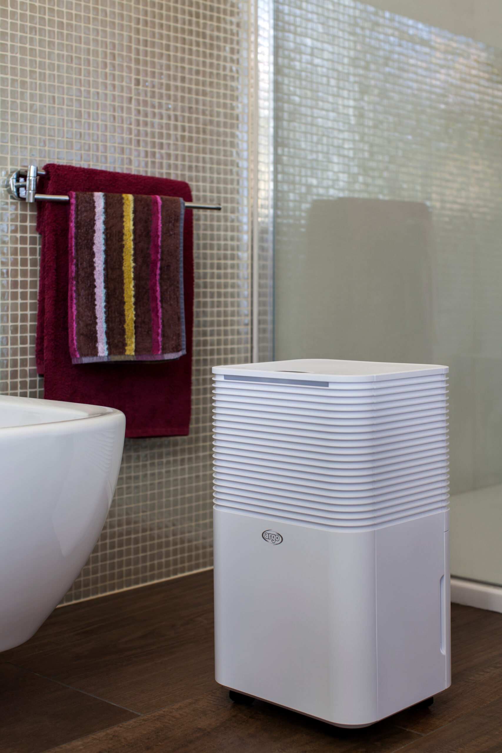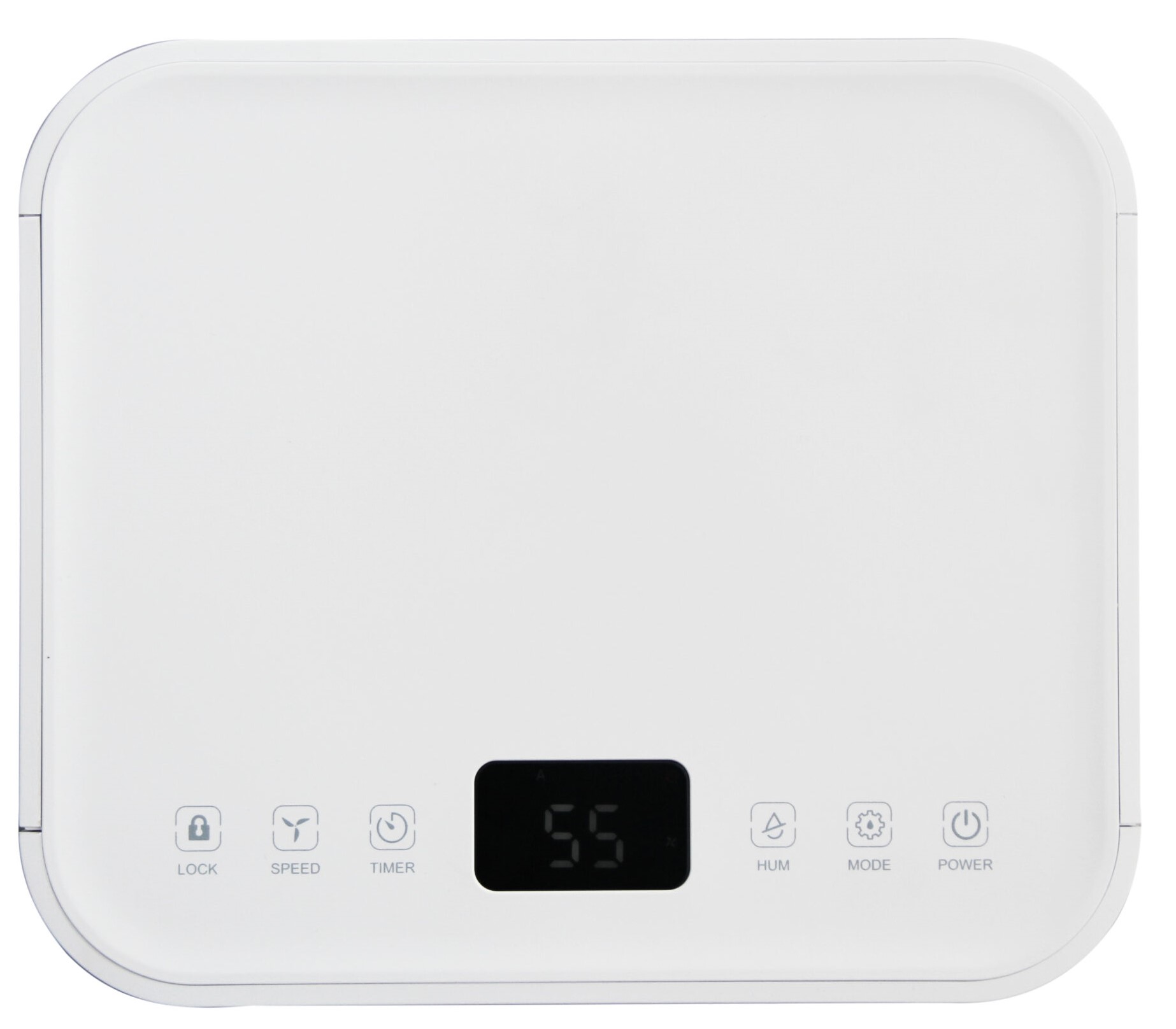 Luchtontvochtiger voor ruimtes tot 50m², de centrale ledstrip en het intelligente display tonen de vochtigheid in de ruimte Soft-touch bedieningspaneel met zeer nauwkeurige led-indicator en hygrostaat met instelbare luchtvochtigheid (30-80%) Uitgerust met 3 modi: automatisch om de werking automatisch te regelen, afhankelijk van de ingestelde temperatuur in vergelijking met de omgevingstemperatuur; LAUNDRY, de eenheid werkt continu, met maximale snelheid om het drogen van de was te bevorderen; slaap, de eenheid werkt bij lage ventilatiesnelheid en het display wordt uitgeschakeld Beschikt over een luchtreinigingsfilter op de aanzuiging, die voor het reinigen kan worden verwijderd en tot lage temperaturen van 5 °C tot 35 °C kan worden gebruikt Uitgerust met in- en uitschakeltimer (1-24 uur), vol alarm en snelkoppeling voor continue condensaatafvoer
