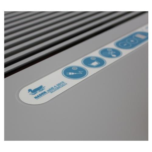 De Nader 50L is een robuuste ontvochtiger die een te hoge luchtvochtigheid tegen maximaal rendement verlaagt. Geschikt voor het ontvochtigen van ruimten in museums, kantoren, werkplaatsen en winkels. Tot 51 liter per dag ontvochtigingscapaciteit en op meerdere plaatsen inzetbaar. Uitgerust met een elektronische hygrostaat en voorzien van een speciale module waarmee u al vanaf 2°C kunt ontvochtigen. Dankzij de speciale constructie van de lucht in- en uitlaat, kan deze Nader 50L ook tegen een wand of tussen de wand en een bank geplaatst worden. De Nader 50L is standaard uitgerust met een luchtfilter en bezit een aansluiting voor een vaste waterafvoer.