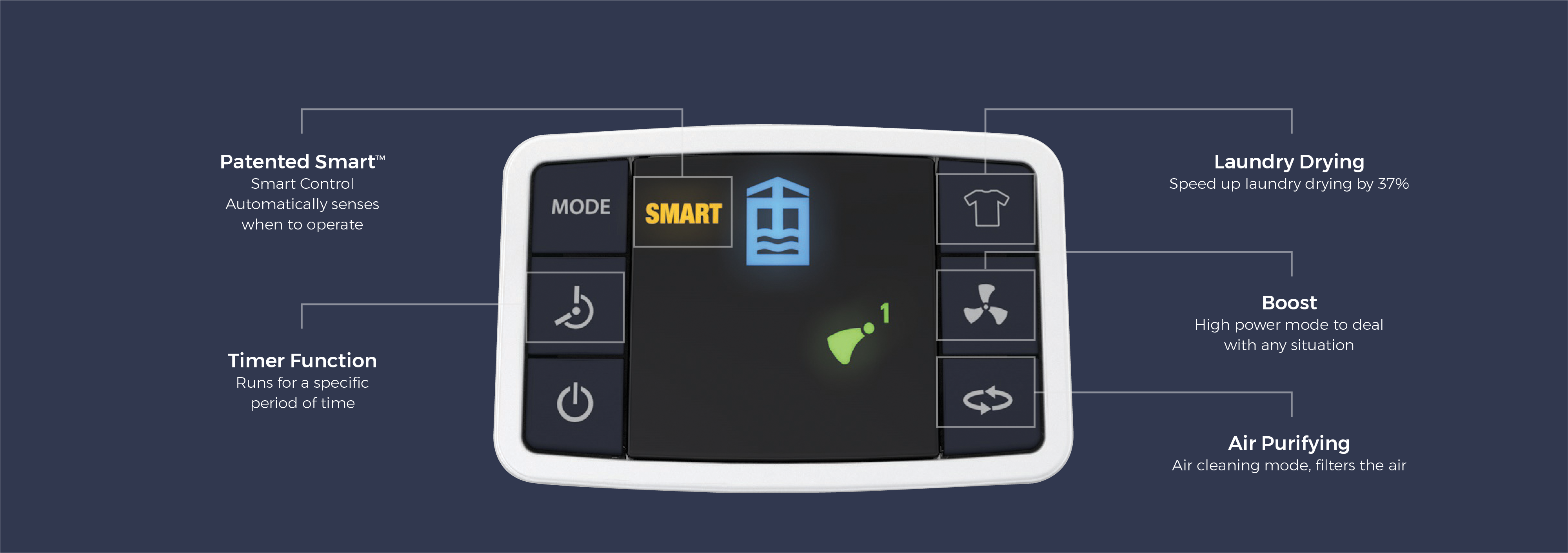 Ebac luchtontvochtigers Ebac luchtontvochtigers verwijderen niet alleen vocht, maar geven ook warmte aan de omgeving af. De combinatie van deze twee factoren maakt dat ze bijna energieneutraal zijn. De 4850 is bijvoorbeeld het ideale alternatief voor wasdrogers om de was te drogen. De 4850 is veel energiezuiniger en droogt de was snel, waardoor de kleding lekker zacht blijft. Een luchtontvochtiger kost slechts 30% van de kosten van een wasdroger. Door een lage luchtvochtigheid te handhaven en de lucht te filteren, zorgen de Ebac luchtontvochtigers voor een beter en gezonder binnenklimaat. Smart Control Profiteer daarnaast van het voordeel van de geavanceerde Smart Control. Met één druk op de knop controleert de Smart Control het vochtgehalte in de omgeving en lost eventuele vocht- en condenstatieproblemen snel op. Samen met de efficiënte luchtstroom- en warmtewisseltechnologie zorgt dit ervoor dat de ideale hoeveelheid water wordt afgevoerd voor uw huis en behoeften. Het optimale vochtigheidsniveau in uw woning varieert gedurende de dag. Het weer, de temperatuur en het vocht dat ontstaat door wassen, koken en ademen hebben allemaal invloed op de relatieve luchtvochtigheid in uw omgeving. Smart Control volgt en past de mate van ontvochtiging automatisch aan aan deze omgevingswaardes. Gemeten waardes worden automatisch onthouden, waardoor de luchtontvochtiger automatisch inschakelt wanneer het niveau begint te stijgen en ook weer uitschakelt wanneer dit niveau daalt. App bediening Dankzij de slimme Smart App-connectiviteit met elk iOS- of Android-apparaat kunt u met de 4850 de bedrijfsmodus wijzigen, het gewenste vochtigheidsniveau van uw kamer bekijken en instellen, en andere prestatieniveaus en waarschuwingen bekijken en beheren. Kenmerken van de Ebac 4850 luchtontvochtiger Watertank van 3.5 liter Aansluiting op afvoer mogelijk Gemakkelijke toegang tot waterreservoir Verwisselbare koolstoffilters helpen de lucht te reinigen Helpt bij allergieën en het tegengaan van huismijt: een beter en gezonder huis Slank en onopvallend design Lage ventilatorsnelheid voor een stillere werking Computergestuurd ontdooisysteem zorgt voor maximale efficiëntie Schakelt automatisch uit wanneer het waterreservoir vol is. Geïntegreerde kabelopberging: netjes en veilig Smart Control maakt handmatig bijstellen overbodig Smart App- connectiviteit met elk iOS- of Android-apparaat Geïntegreerde handgrepen voor gemakkelijke verplaatsing Optie: wielset los verkrijgbaar en toe te voegen door voorgeboorde gaten: voor extra mobiliteit