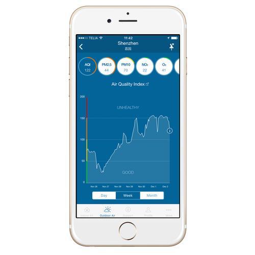 Compacte en elegante luchtreiniger met WiFi De volgende generatie BlueAir 405 Particle uit de populaire Classic-serie van BlueAir. Luchtreiniger BlueAir 405 Particle is compact en reinigt efficiënt. De Smart luchtreiniger heeft een elegant design met een bijzonder stijlvol led-display en touch-bediening. BlueAir 405 is ideaal voor grotere (slaap)kamers, kleinere woonkamers en kleinere kantoren. HEPA Silent BlueAir 405 bezit gepatenteerde HEPA Silent technologie, waarmee tot 99,97% van de deeltjes tot de afmeting van 0,3 micrometer verwijderd worden. BlueAir HEPA Silent technologie past een unieke combinatie toe van elektrostatische en mechanische filtertechnieken. Dit zorgt ervoor dat het luchtfilter in de reiniger langer open blijft en er dus minder kracht nodig is om de lucht door het filter te leiden. Deze technologie leidt tot eersteklas prestaties bij elke snelheid en een zeer laag geluidsniveau. De luchtreiniger is bovendien gecertificeerd met EnergyStar, hetgeen een minimaal stroomverbruik aantoont. Via moderne LED-symbolen kunt u de status van de WiFi-verbinding en ventilatorsnelheid van uw luchtreiniger zien. Daarnaast ziet u wanneer het noodzakelijk is om het filter te vervangen. BlueAir 405 kan middels de touch toetsen worden bediend en middels de WiFi-functie op afstand via uw smartphone of tablet. Blueair Friend App Met de Blueair Friend app kunt u volgende functies bedienen op de Blueair 405 luchtreiniger: ventilatorsnelheid, LED-intensiteit, kinderslot en nachtmodus. De Blueair Friend app kan gratis worden gedownload in de App Store of via Google Play. Filterkeuze Luchtreiniger BlueAir 405 wordt standaard geleverd met een HEPA (fijnstof) filter OF een SmokeStop filter. Heeft u naast zwevende deeltjes zoals fijnstof, stof en pollen ook problemen met geuren en gassen, dan adviseren wij het SmokeStop filter met actieve kool voor de beste resultaten. Geniet van schone, gezonde lucht die voor maar liefst 99,97% vrij is van vervuiling! Producteigenschappen Vijf luchtwisselingen per uur in een kamer van 40 m² (CADR 476 m³/h). Is geschikt voor grotere (slaap)kamers, kleinere woonkamers en kleinere kantoren. Aansturen van ventilatorsnelheid, LED-intensiteit, in- en uitschakelen, kinderslot, nachtmodus via smartphone / tablet. Uniek Blueair filter met 4,2 m² filteroppervlakte. Gepatenteerde HEPA Silent technologie. Energiezuinig (15-90 W). Geluidsarm (32-52 dB(A)). Een indicator voor het vervangen van het filter. Eenvoudig te gebruiken en te onderhouden. Extern getest door AHAM en EnergyStar. Netwerk Goedgekeurde aansluitingen/netwerk voor Blueair 405. 2,4 GHz standaard WiFi Access Points (b, g of n). Beveiligde netwerken: WEP, WPA, WPA2, TKIP, AES. Niet-beveiligd netwerk: Open