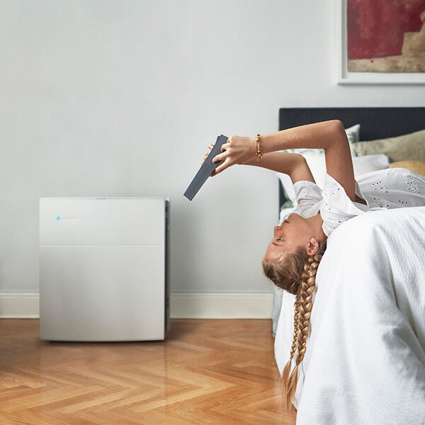 Compacte en elegante Smart luchtreiniger met WiFi en ingebouwde fijnstof, stof- en geursensoren De volgende generatie Blueair 480i standaard uitgevoerd met fijnstof-, stof- en geursensoren. Uit de populaire Classic-serie van Blueair. Luchtreiniger Blueair 480i reinigt de lucht volledig automatisch en efficiënt. De slimme luchtreiniger is compact en heeft een elegant en discreet ontwerp. Blueair 480i is klein en dus makkelijk te verplaatsen, maar laat zijn bescheiden afmetingen u niet misleiden: de capaciteit is uitstekend dankzij het grote oppervlakte van het filter. BlueAir 480i is ideaal voor grotere (slaap)kamers, kleinere woonkamers en kleinere kantoren. HEPA Silent Blueair 480i maakt gebruik van Blueair's gepatenteerde HEPASilent technologie, die 99,97% van de deeltjes in de lucht opvangt tot een grootte van slechts 0,3 micrometer. HEPASilent gebruikt een unieke combinatie van elektrostatische en mechanische filters, hetgeen betekent dat het filtermedium minder dicht worden gemaakt en er minder kracht nodig is om de lucht door het filter te laten, wat leidt tot eersteklas prestaties bij elke snelheid en een zeer laag geluidsniveau. Het product is ook gecertificeerd met EnergyStar en daardoor een minimaal stroomverbruik heeft. Via moderne LED-symbolen kunt u de status van de WiFi-verbinding en ventilatorsnelheid van uw luchtreiniger zien. Daarnaast ziet u wanneer het noodzakelijk is om het filter te vervangen. Slimme luchtreiniger BlueAir 480i kan middels de touch toetsen worden bediend en middels de WiFi-functie op afstand via uw smartphone of tablet. Blueair Friend App Met de Blueair Friend app kun je functies bedienen op de Blueair 480i luchtreiniger, zoals ventilatorsnelheid, LED-intensiteit, in- en uitschakelen, kinderslot en nachtmodus. De Blueair Friend app kan gratis worden gedownload in de App Store of via Google Play. Ingebouwde sensoren De intelligente luchtsensoren in de Blueair 480i luchtreiniger laten het toe om te meten, te beheersen en bewust te worden van de kwaliteit van de binnenlucht. De sensoren detecteren luchtvervuiling zoals zwevende deeltjes, gassen, vluchtige organische verbindingen (VOC's) en passen de werking van de luchtreiniger hierop automatisch aan. U kunt ook actuele informatie over de temperatuur en luchtvochtigheid op uw smartphone / tablet ontvangen. De sensoren meten Honderden verschillende soorten ultra kleine zwevende deeltjes (PM 2,5) Vluchtige organische stoffen (VOC's) zoals verf oplosmiddelen, parfums, schoonmaakmiddelen, formaldehyde en benzeen Ruimte Temperatuur Relatieve luchtvochtigheid Filterkeuze Luchtreiniger BlueAir 480i wordt standaard geleverd met een HEPA (fijnstof) filter OF een SmokeStop filter. Heeft u problemen met geuren en gassen, adviseren wij een SmokeStop filter met actieve kool voor de beste resultaten. Geniet van de ademhaling van schone, gezonde lucht, dat 99,97% vrij is van vervuiling. Producteigenschappen Vijf luchtwisselingen per uur in een kamer van 40 m² (CADR 510 m³/h) Een overzicht van uw actuele kwaliteit van de binnenlucht en geschiedenis met diagrammen (dag / week / maand) Ingebouwde sensoren meten deeltjes, VOC's (gassen), ruimte temperatuur en relatieve luchtvochtigheid Is geschikt voor (slaap)kamers en kleinere appartementen Variabele ventilatorsnelheid, LED-intensiteit, kinderslot, nachtmodus via smartphone / tablet Unieke Blueair filter met 4,2 m² filter oppervlakte Gepatenteerde HEPASilent technologie Energiezuinig (15-90 W) Geluidsarm (32-52 dB(A)) Indicator voor het vervangen van het filter Eenvoudig te gebruiken en te onderhouden Extern getest door AHAM en EnergyStar Netwerk Goedgekeurde aansluitingen/netwerk voor Blueair 480i 2,4 GHz standaard WiFi access points (b, g of n) Beveiligde netwerken: WEP, WPA, WPA2, TKIP, AES Niet-beveiligd netwerk