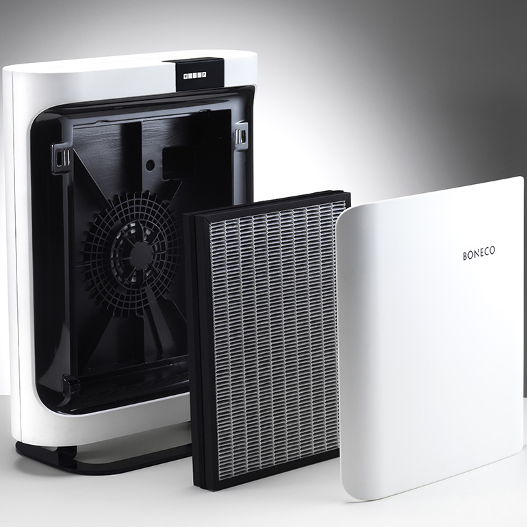 Geavanceerde luchtreiniger met een slank design, een Red Dot Design Award winnaar! Geschikt voor luchtreiniging in huis, slaapkamer en kantoor, het hele jaar door. Voorzien van een individueel filterconcept: lucht reinigen volgens persoonlijke voorkeur. Keuze uit drie verschillende HEPA-filters: Allergie HEPA filter (standaard bij levering), Babykamer HEPA filter of een Smog HEPA filter. Deze filters bezitten allen een voorfilter en een actief kool antigeur filter.