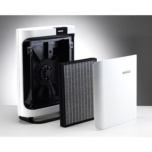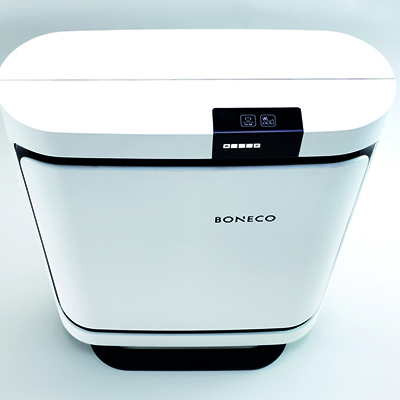 Met de keuze uit verschillende filters kan de Boneco P400 aangepast worden aan uw persoonlijke wensen. De luchtreiniger wordt standaard geleverd met het Allergie HEPA filter, maar ook is het mogelijk om het Baby HEPA filter of het Smog HEPA filter te gebruiken. Alle drie de filters voor Boneco P400 bezitten een voorfilter en een actief kool filter tegen geuren. Luchtreiniger Boneco P400 heeft een prijs winnend design, het is een Red Dot Design Award winnaar! Het is een slanke luchtreiniger die weinig ruimte inneemt. Door het strakke design past de P400 in elke omgeving, zowel thuis als op kantoor. Door zijn stille werking leidt de luchtreiniger niet af. Boneco P400 heeft een ultra stille werking op de laagste stand. Hij verwijdert onder andere allergenen, pollen, virussen, stof, huidschilfers van huisdieren, huisstofmijt, rook en geurtjes uit de lucht. Geniet van frisse lucht alsof u in de bergen bent. Specificaties Individuele filteroplossing voor elke kamer en elke behoefte. Ideaal voor alle kleinere kamers: babykamer of kinderkamer, slaapkamer, huiskamer, kantoor. Efficiënte luchtreiniging. 5 ventilatieniveaus. Fluisterstille werking in de laagste stand. Laag energieverbruik. Snelle, makkelijke en intuïtieve bediening. Digitaal display met makkelijke functies. Indicator voor filter vervangen. Gracieus, slank ontwerp. Houder voor het gebruik van geuren. Hoge kwaliteit onderdelen met een lange levensduur. De P400 wordt standaard met het Boneco A401 ALLERGIE hepa-filter geleverd.