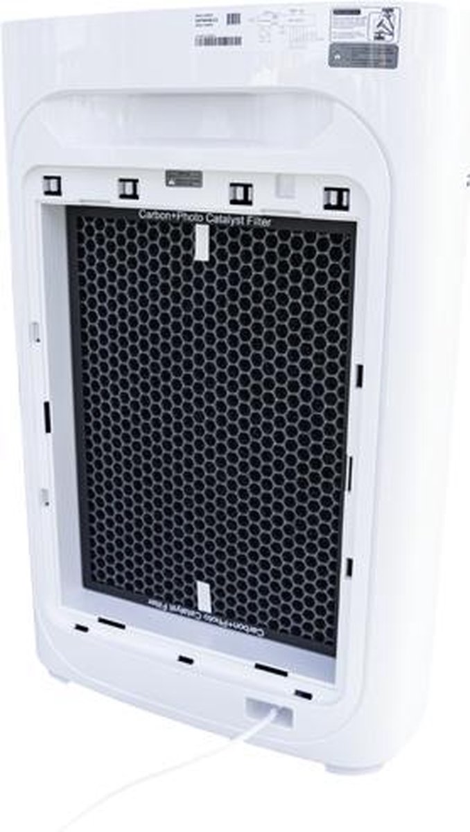 De nieuwe serie luchtreinigers van Carrier worden gekenmerkt door een compact en lichtgewicht ontwerp, waardoor de luchtreiniger makkelijk te verplaatsen is. De Carrier luchtreiniger UVC 26 is geschikt voor ruimtes tot 25 m². Deze serie luchtreinigers zijn uitgerust met een UV-lamp voor een effectieve werking tegen virussen en bacteriën. 4-laags filtering Wat de luchtreiniger effectief maakt, is het 4-laagse filtersysteem, bestaande uit het wasbare nylon voorfilter, het H13 HEPA filter, een carbon filter en de UV C filtering. Het voorfilter vangt stof en haar op. Daarna verwijdert het actieve-koolstoffilter schadelijke gassen en onaangename geurtjes. het NanoProtect HEPA-filter vangt ultrafijne deeltjes zo klein als 0,3 micron op en ten slotte de UV-C-straling met een golflengte van 100-280 nm elimineert effectief bacteriën en virussen die zich op oppervlakken bevinden, én voorkomt hun ontwikkeling. Display Dankzij het display op het voorpaneel van de reiniger is het mogelijk om de kwaliteit van de lucht te weten, dit wordt gemeten op vier verschillende niveaus. Door de kleurindicator is te zien wat de kwaliteit van de lucht is. Op basis van deze indicaties grijpt de reiniger automatisch in en zorgt er weer voor dat de luchtkwaliteit weer op het gewenste niveau is. Uiterst stille werking In de slaapstand wordt het licht van de display gedimd en doet de luchtzuiveraar zijn werk in bijna volledige stilte, zodat je ook terwijl je slaapt wordt voorzien van schone lucht. Intelligente automatische zuivering Slimme detectietechnologie scant de ruimte in realtime en elimineert automatisch de drie belangrijkste risico's voor binnenlucht: deeltjes, schadelijke gassen en allergenen binnenshuis. Schakel eenvoudig tussen 4 modi: de automatische modus, de slaapmodus, de zachte modus en de turbomodus. Kenmerken van de Carrier UVC26 luchtreiniger voor middelgrote ruimtes tot 25 m². 4 Fase luchtreiniging. Intilligente automatische zuivering. UV-C-lamp - genereert een lichtgolf die virussen verwijdert. H13 HEPA-filter - vangt 99.95% van de deeltjes met een grootte van <0,3 µm op. Voorfilter, Hepa filter, actief koolstof filter en UV-C filtering. Display luchtkwaliteit - Kleurindicaties voor luchtkwaliteit.