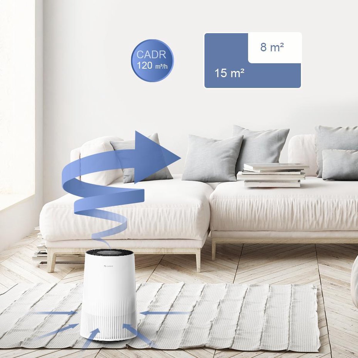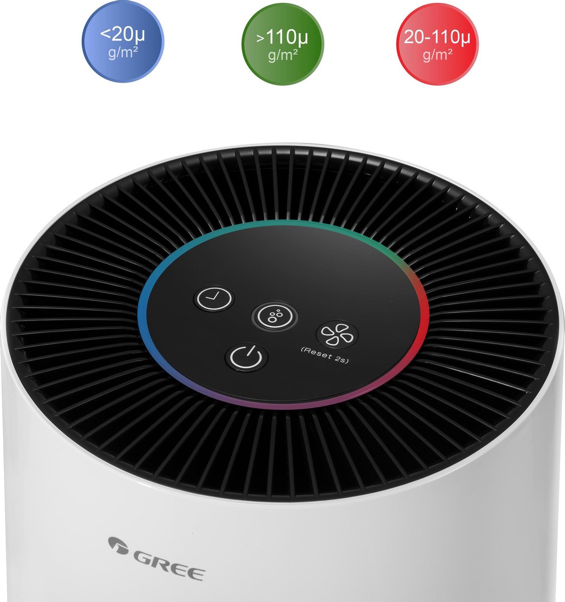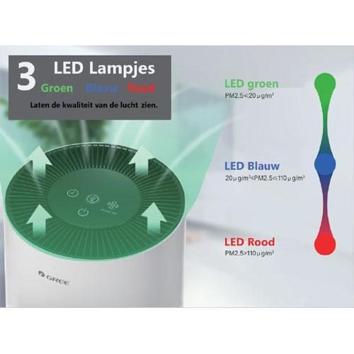 De compacte en stijlvolle Gree Falcon luchtreiniger past een unieke filtermethode toe door gebruik van een fijn voorfilter, een HEPA filter en een actief koolstoffilter. Hiermee reinigt de Gree Falcon luchtreiniger op een efficiënte manier het binnenklimaat. De Gree Falcon luchtreiniger is geschikt voor ruimtes tot 15 m² en geeft via LED een indicatie van de status van de luchtkwaliteit.