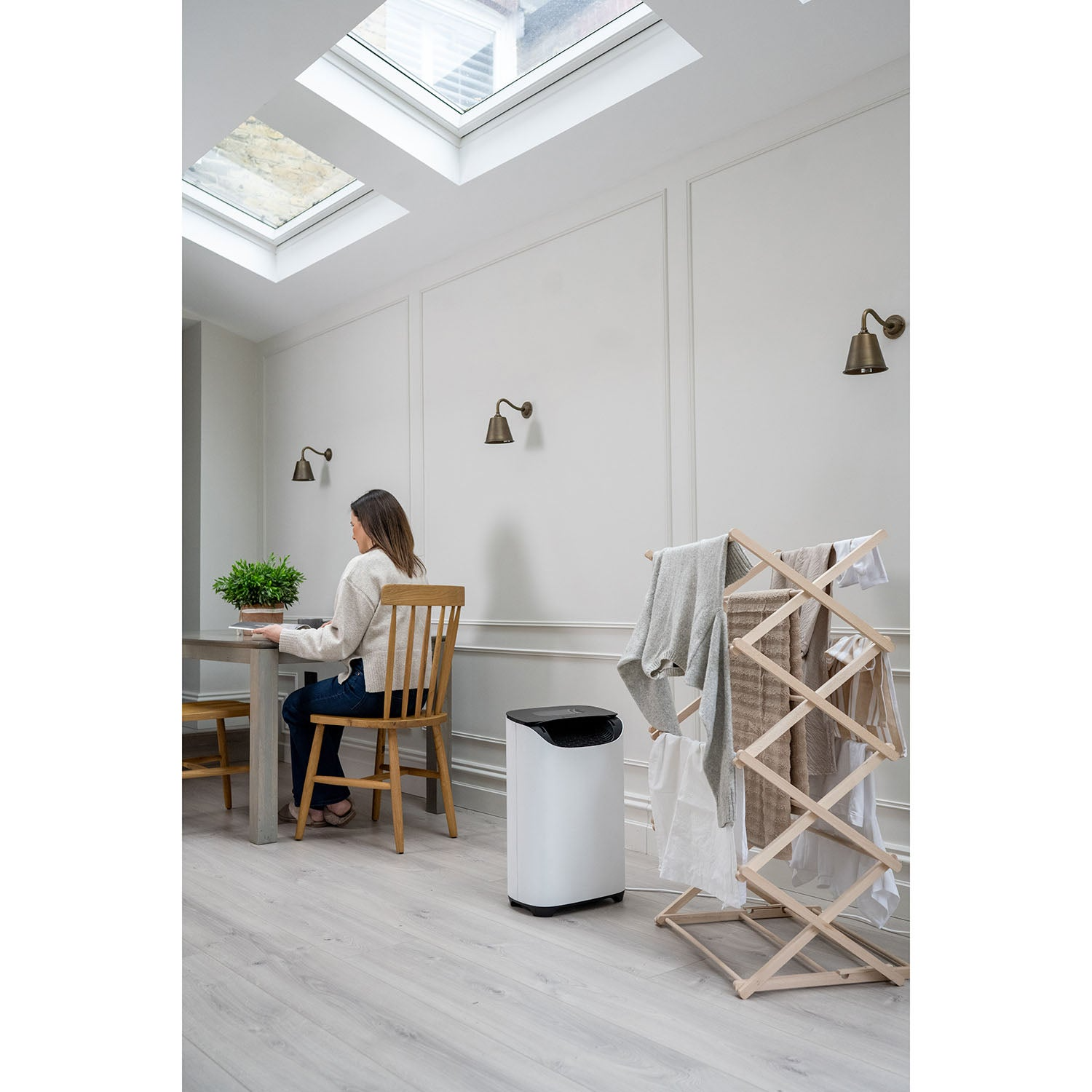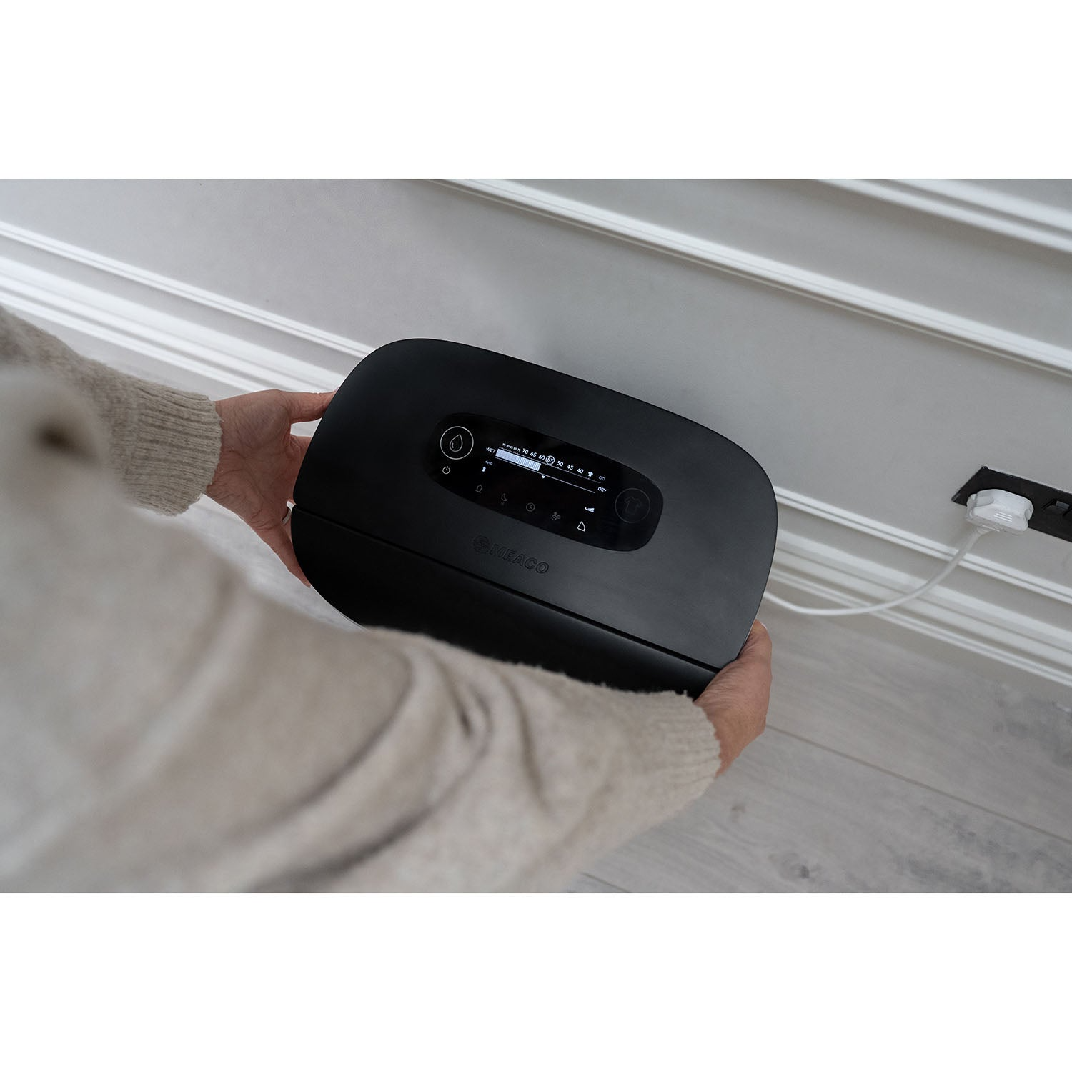 Minder tijd met drogen. Meer tijd om te leven. De DD8L Pro is niet zomaar een ontvochtiger – het is jouw dagelijkse wasassistent. De geavanceerde Laundry-modus combineert warmte, luchtstroom en slimme automatisering om was sneller te drogen dan welke ontvochtiger ook. Dankzij de automatische louvre die de luchtstroom rechtstreeks op je was richt, is hij ideaal voor binnen drogen tijdens vochtige winters of in onverwarmde ruimtes. Geniet van kortere droogtijden, een opgeruimder huis en meer tijd voor wat echt telt. Efficiënt wanneer je dat wilt. Krachtig wanneer je het nodig hebt. Of je nu maximale prestaties of minimale energieverbruik verkiest, met de DD8L Pro heb je altijd de controle. In Smart Energy Mode past de ontvochtiger automatisch het vermogen aan tussen laag, medium en hoog, afhankelijk van hoe ver de luchtvochtigheid afwijkt van je doelwaarde. Blijft het verschil binnen 5%, dan werkt hij stil en energiezuinig. Stijgt het vochtgehalte 20% boven je doel, dan schakelt hij automatisch over naar hoge stand voor snelle ontvochtiging. Slim, krachtig en altijd afgestemd op jouw huis. Naadloos verbonden. Moeiteloos in controle. Verbind de DD8L Pro via WiFi met de Meaco App, compatibel met Google en Alexa. Of je nu thuis bent of op afstand het klimaat van je boot, garage of tweede woning wilt beheren, je houdt altijd controle. Pas instellingen aan, schakel modi om en volg de luchtvochtigheid in real time, waar je ook bent. Eenvoud in dagelijks gebruik. Van het vernieuwde Chase Display, dat foutcodes vervangt door duidelijke meldingen, tot de geïntegreerde kabelhouder waarmee het toestel strak tegen de muur kan staan – elk detail is doordacht. Het resultaat: een strak design, stillere werking en gebruiksgemak in elke kamer. Fluisterstil. Lichtvrij. Slaapvriendelijk. De Night Mode schakelt alle lampjes en geluiden uit, terwijl de luchtstroom zachtjes blijft circuleren. Perfect voor slaapkamers, babykamers of overal waar rust belangrijk is. Antibacteriële ionisator. De ingebouwde steriliserende ionisator neutraliseert actief bacteriën, schimmelsporen en allergenen terwijl overtollig vocht wordt verwijderd. Zo geniet je van schonere, gezondere lucht in huis. Wandmontage. Zorgeloos gemak. Bespaar vloerruimte en maak onderhoud eenvoudiger. Met de optionele wandbeugel (apart verkrijgbaar) hang je de DD8L Pro veilig op en gebruik je de continue afvoer met de meegeleverde slangadapter (12,5 mm). Praktisch, stijlvol en efficiënt. 3 jaar garantie. Ontworpen in het Verenigd Koninkrijk, gebouwd om lang mee te gaan en ondersteund door 3 jaar garantie.