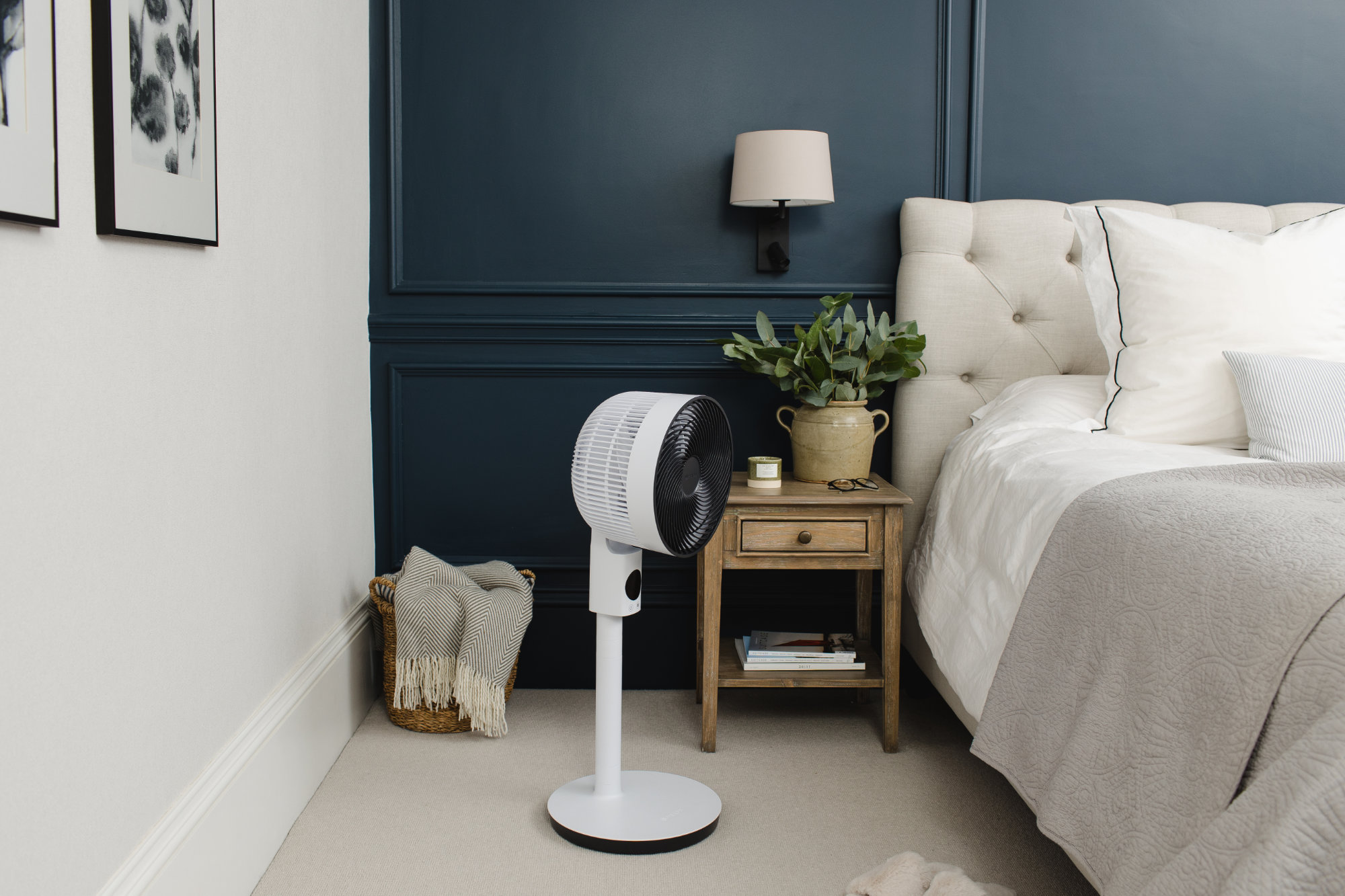 De nieuwste stille staande ventilator van Meaco: Sefte 10 Pedestal! De MeacoFan Sefte 10 Pedestal is een ventilator op voetstuk en is geschikt voor iedere kamer en past overal in huis. Te gebruiken als tafelmodel, vloermodel en staande ventilator. Volledig naar wens aan te passen in hoogte (59 - 84 - 110 cm) en om te toveren van tafelmodel tot sokkel. Op de vloer in de woonkamer of op het nachtkastje in de slaapkamer zorgt de ventilator voor optimale koeling. Ontworpen voor dagelijks gebruik, werkt de MeacoFan Sefte 10 Pedestal stil en efficiënt. Zet hem op één van zijn 12 continu-standen, of kies voor de nachtstand of eco-stand. Borstelloze DC motor, dus ultrastil De zeer efficiënte DC borstelloze motor draait met meer dan 1450 RPM, verbruikt zo min mogelijk energie en produceert zo min mogelijk geluid. Daardoor is de Meaco Sefte 10 Pedestal-ventilator ultrastil vanaf 25 dB. De luchtstroom horizontaal en verticaal met standen instellen Met de Air Beam Precision oscillatieopties heb je zowel overdag als 's nachts volledige controle over de luchtstroom. Stel je Sefte in om te werken binnen smalle, medium of brede zones. De Air Beam Precision biedt zes oscillatiezones (3 stuks horizontaal en 3 stuks verticaal), en is speciaal ontworpen voor gerichte koeling. Glow-in-the-dark afstandsbediening De Glow-in-the-dark afstandsbediening zorgt voor eenvoudige bediening 's nachts en maakt een betere regeling van de ventilatorsnelheid mogelijk. Ook is de ontvanger van de afstandsbediening verplaatst naar net onder de kop, waardoor u de instellingen eenvoudig vanaf elke plek kunt aanpassen. Met de nachtmodus kan alles stil en gedimd gehouden worden terwijl u slaapt. Belangrijkste kenmerken van Meaco Sefte 10 Pedestal: In hoogte verstelbaar Groot display en hoge ontvanger Zeer efficiënte DC borstelloze motor Verborgen draaggreep In het donker oplichtende magnetische afstandsbediening 12 ventilatorsnelheden Horizontale en verticale oscillatie, elk in 3 standen instelbaar Precisie luchtstraal Nachtmodus Eco-Modus Pauzeknop Timer AAN/UIT